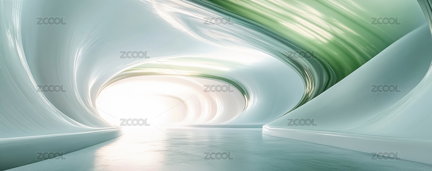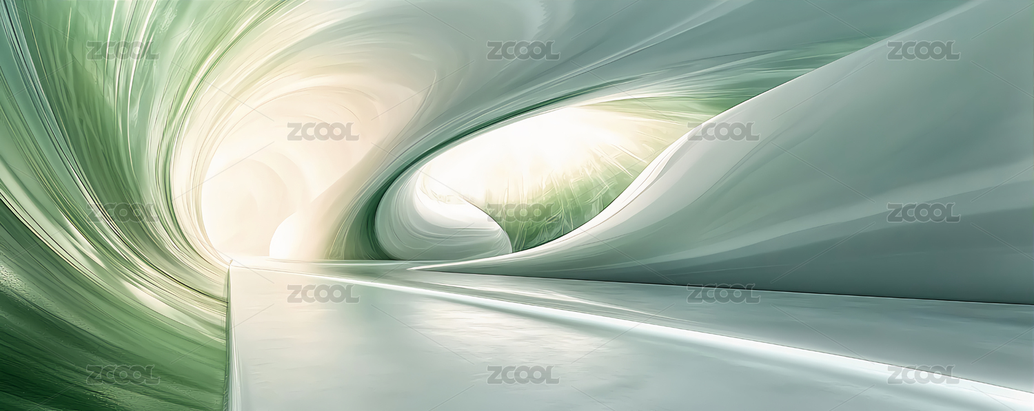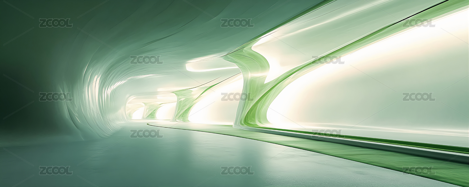 弧形,极简,建筑,场景,绿色,弯曲,抽象,道路,走廊,隧道