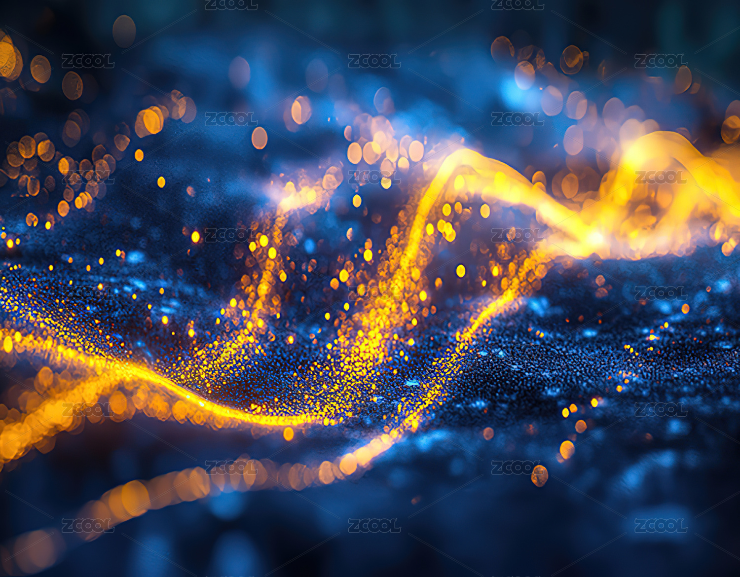 深蓝色背景下闪耀着光点粒子效果