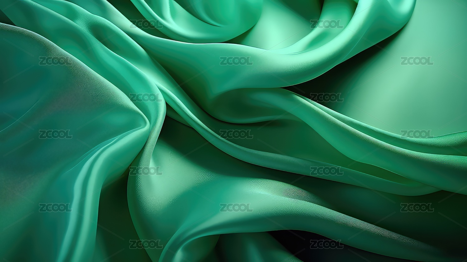 绿色丝绸褶皱光影交错质感细腻抽象背景