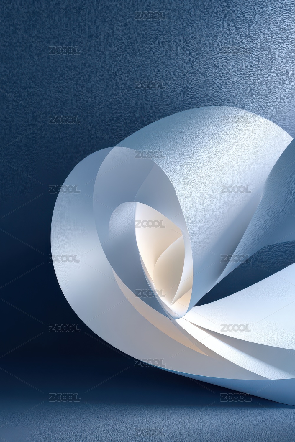 蓝色纸张弯曲形成独特形状富有质感