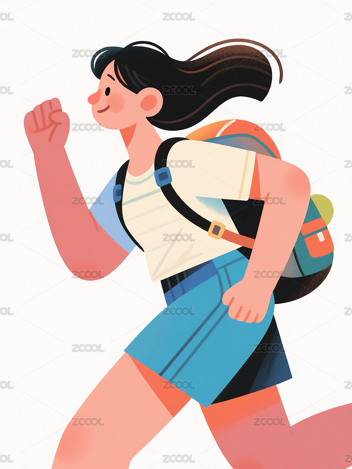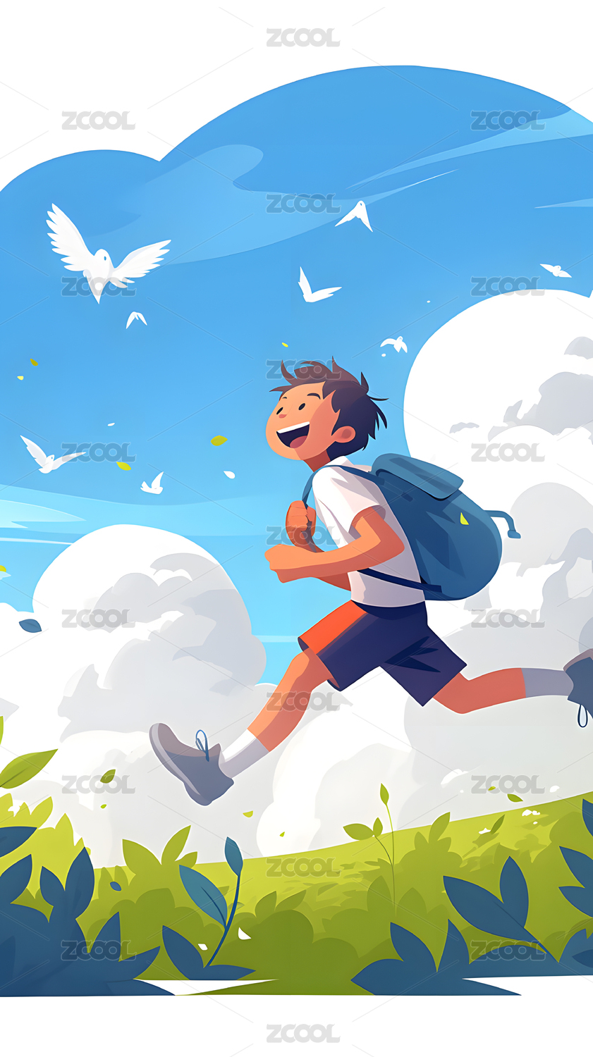 女孩,插画,白色,背景,扁平风,奔跑,开学季,书本,背包,壁纸