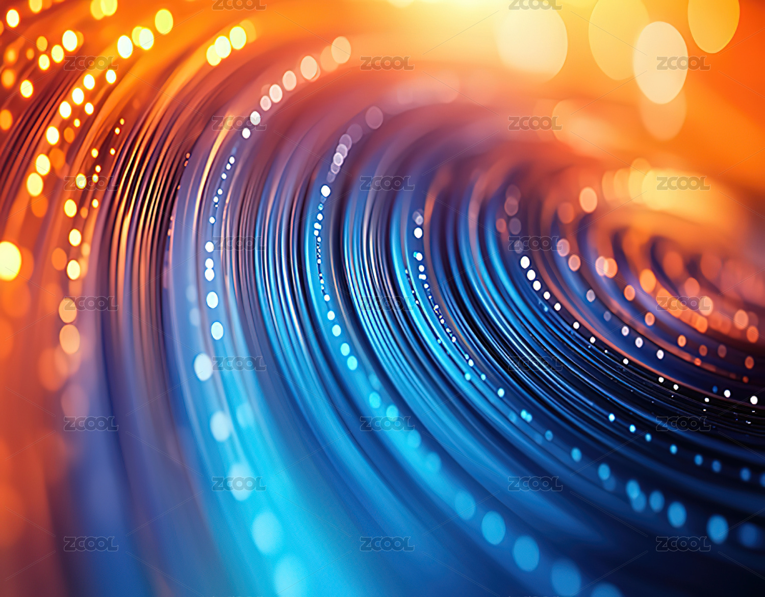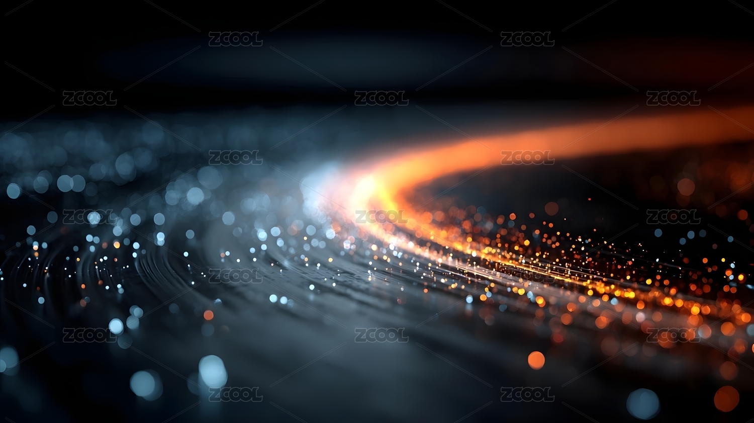 抽象光影线条交织流动蓝橙色调