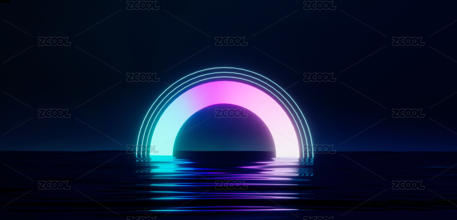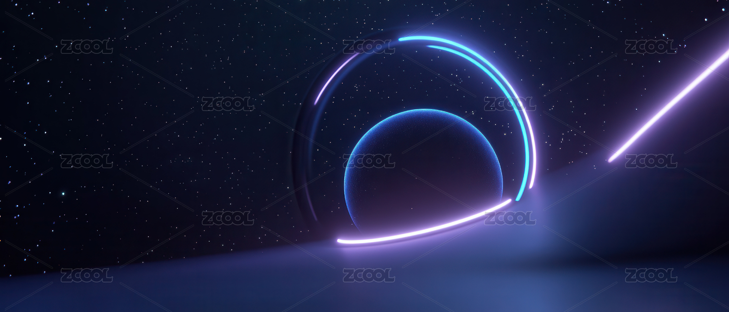 紫蓝霓虹圆形构成抽象空间