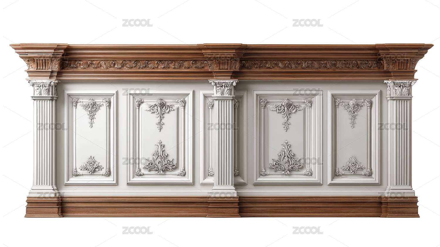 经典优雅木质装饰面板带华丽雕刻细节