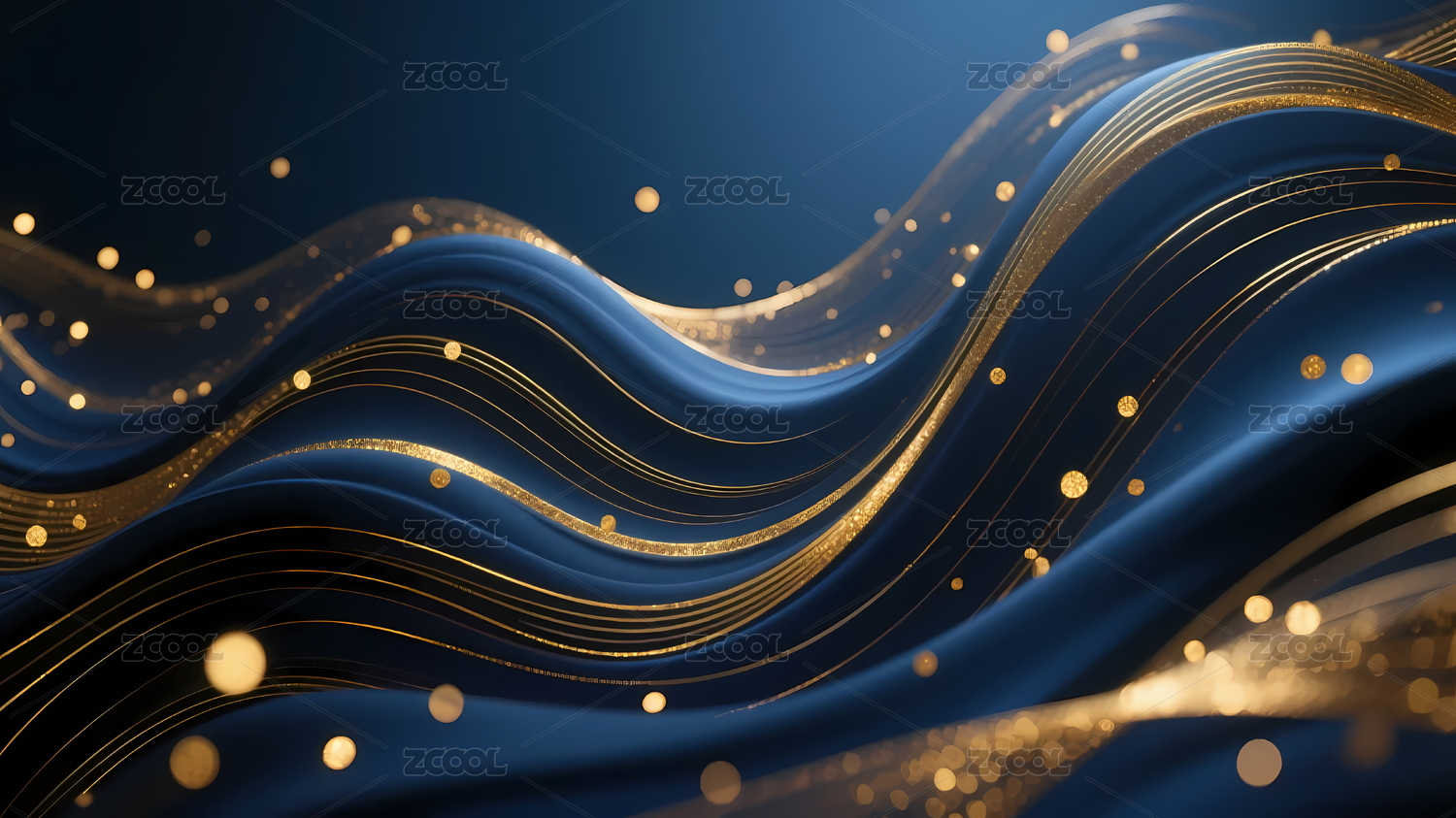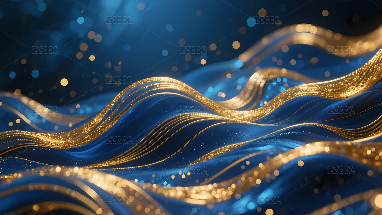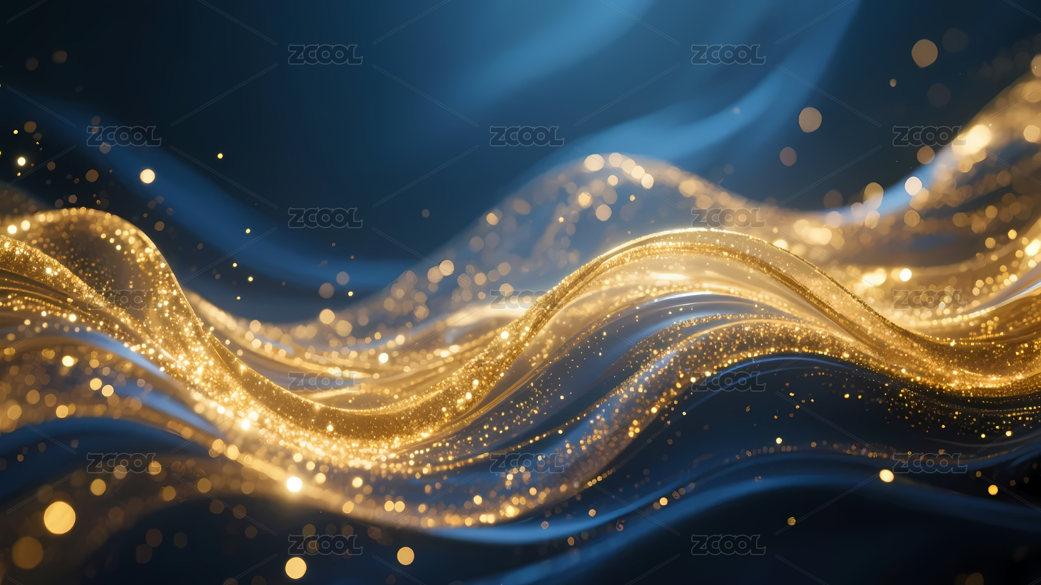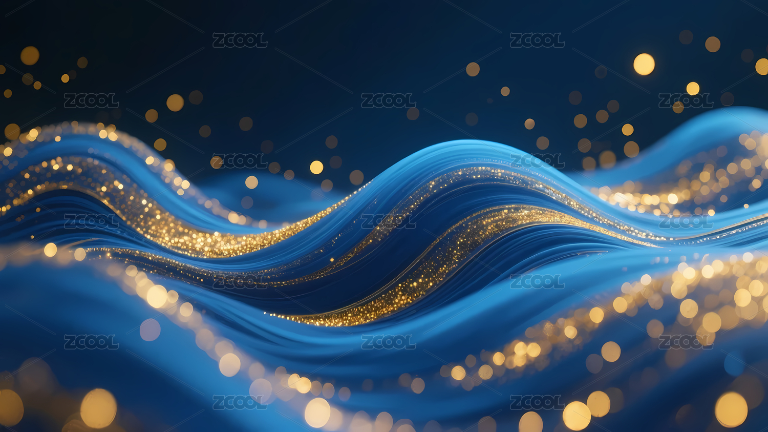 波浪,金色,背景,蓝色,梦幻,动态,柔和,现代,光点,光斑