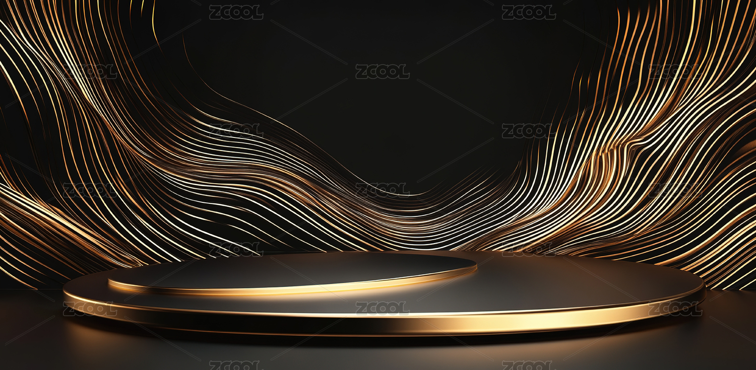 金色圆形底座与波浪背景