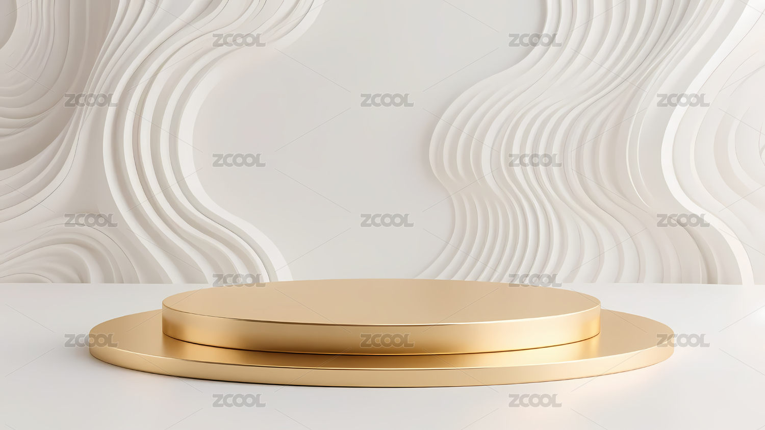 白色多层圆台与金色波浪背景图