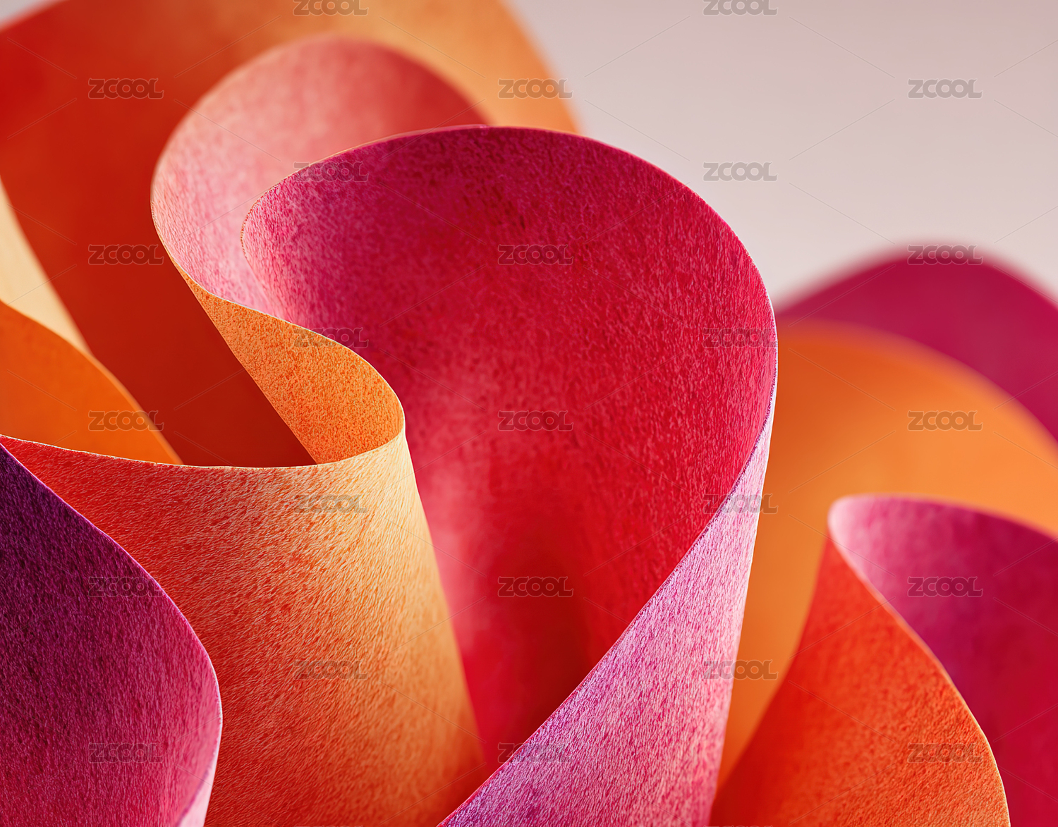 彩色纸张卷曲形成抽象纹理