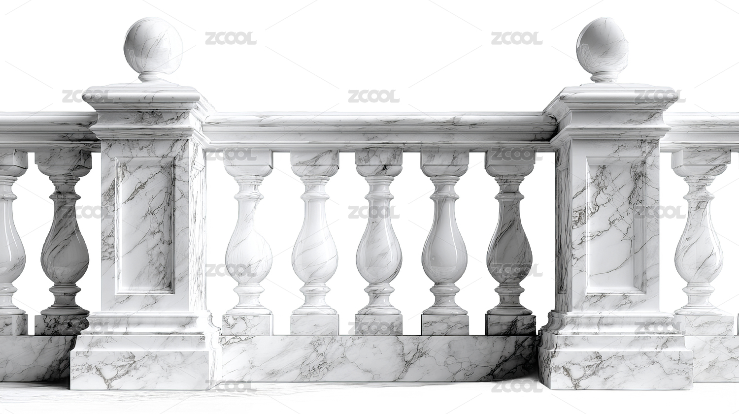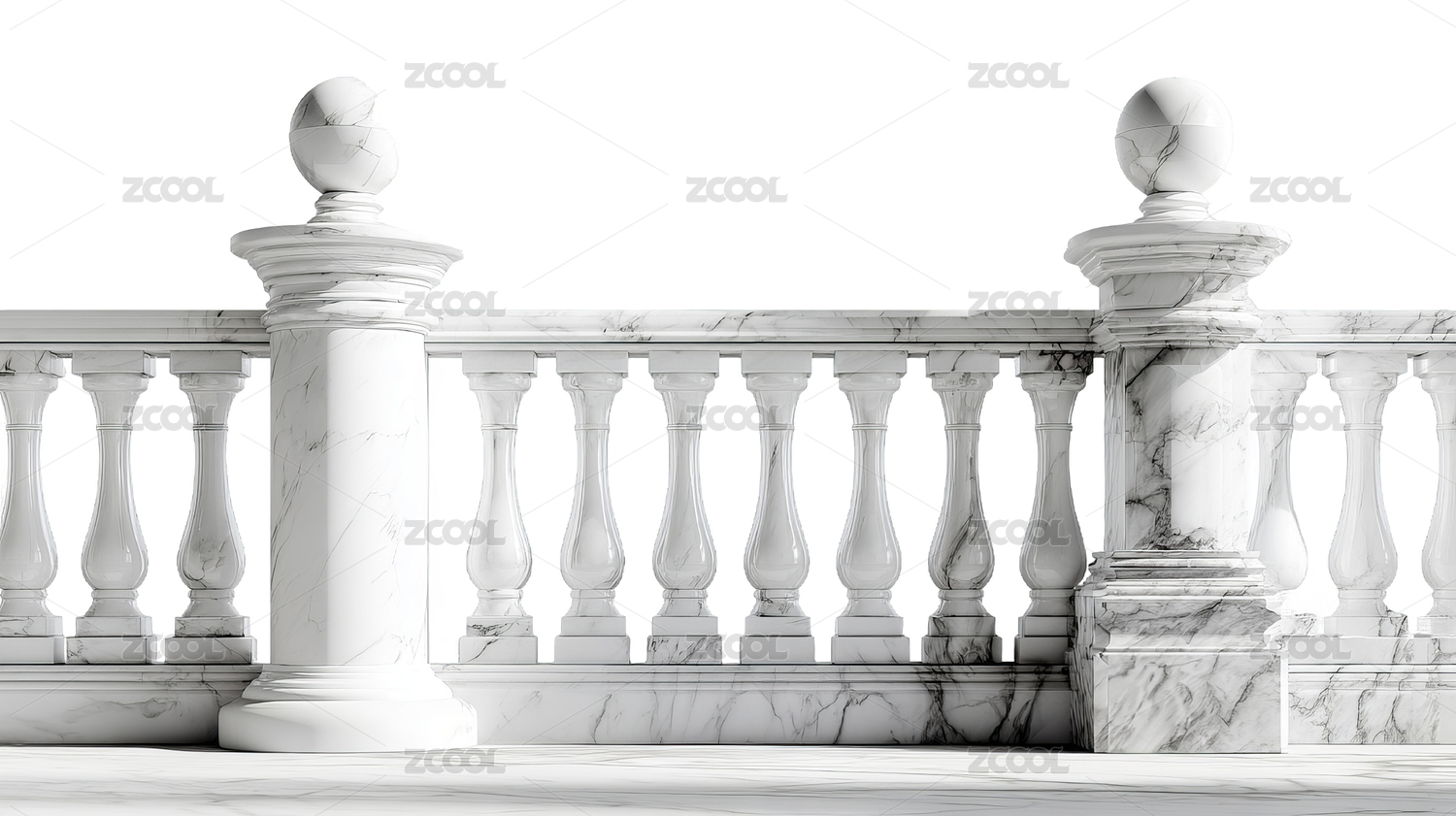 精致白色大理石栏杆,装饰性立柱与圆顶
