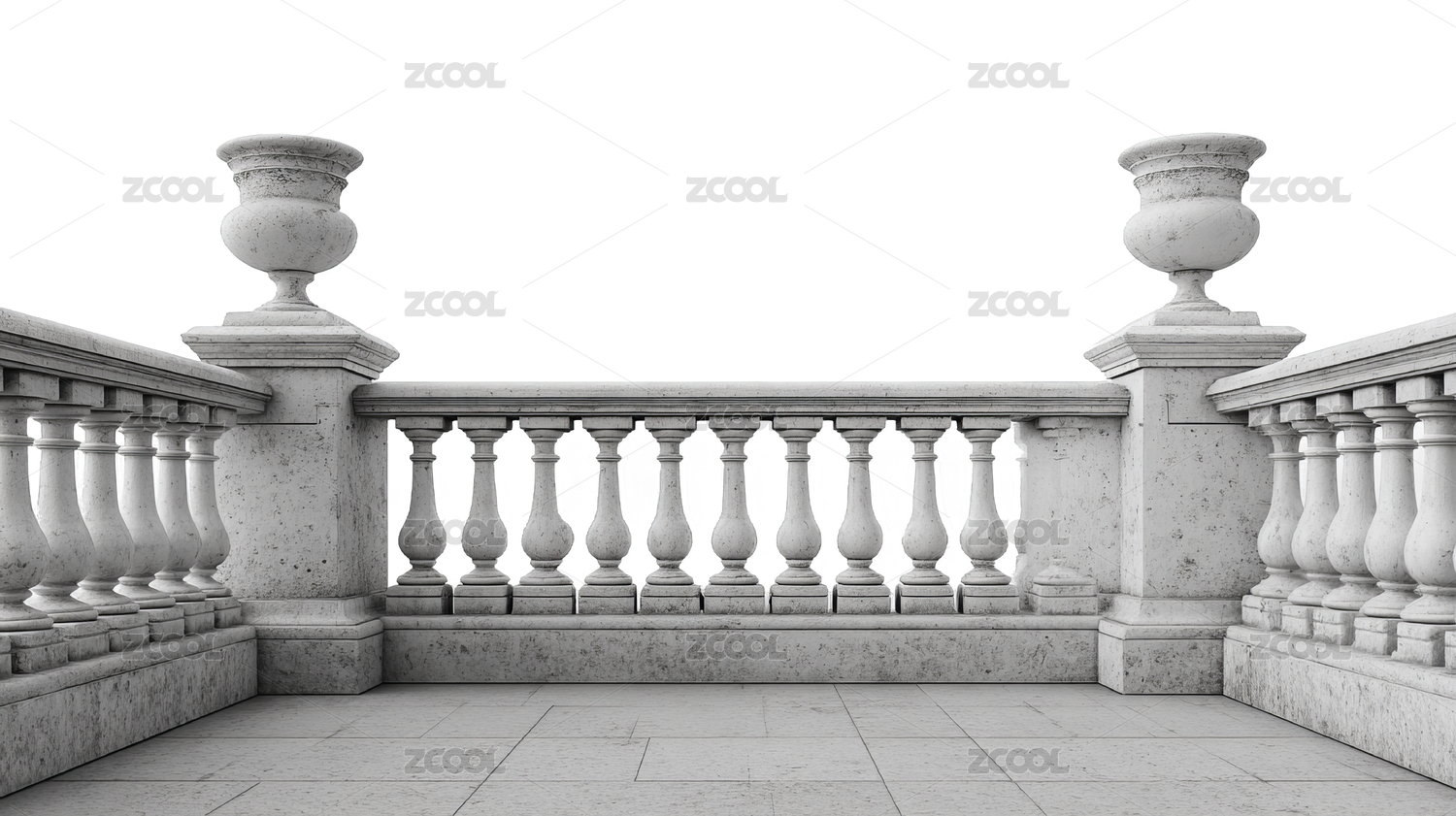 古典风格白色石制栏杆带装饰瓮形柱顶