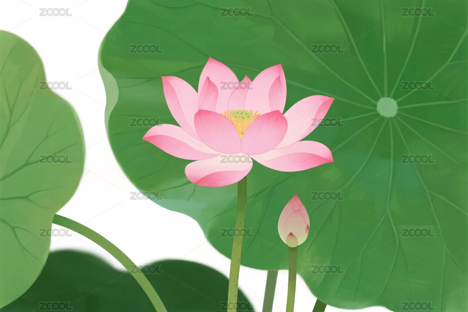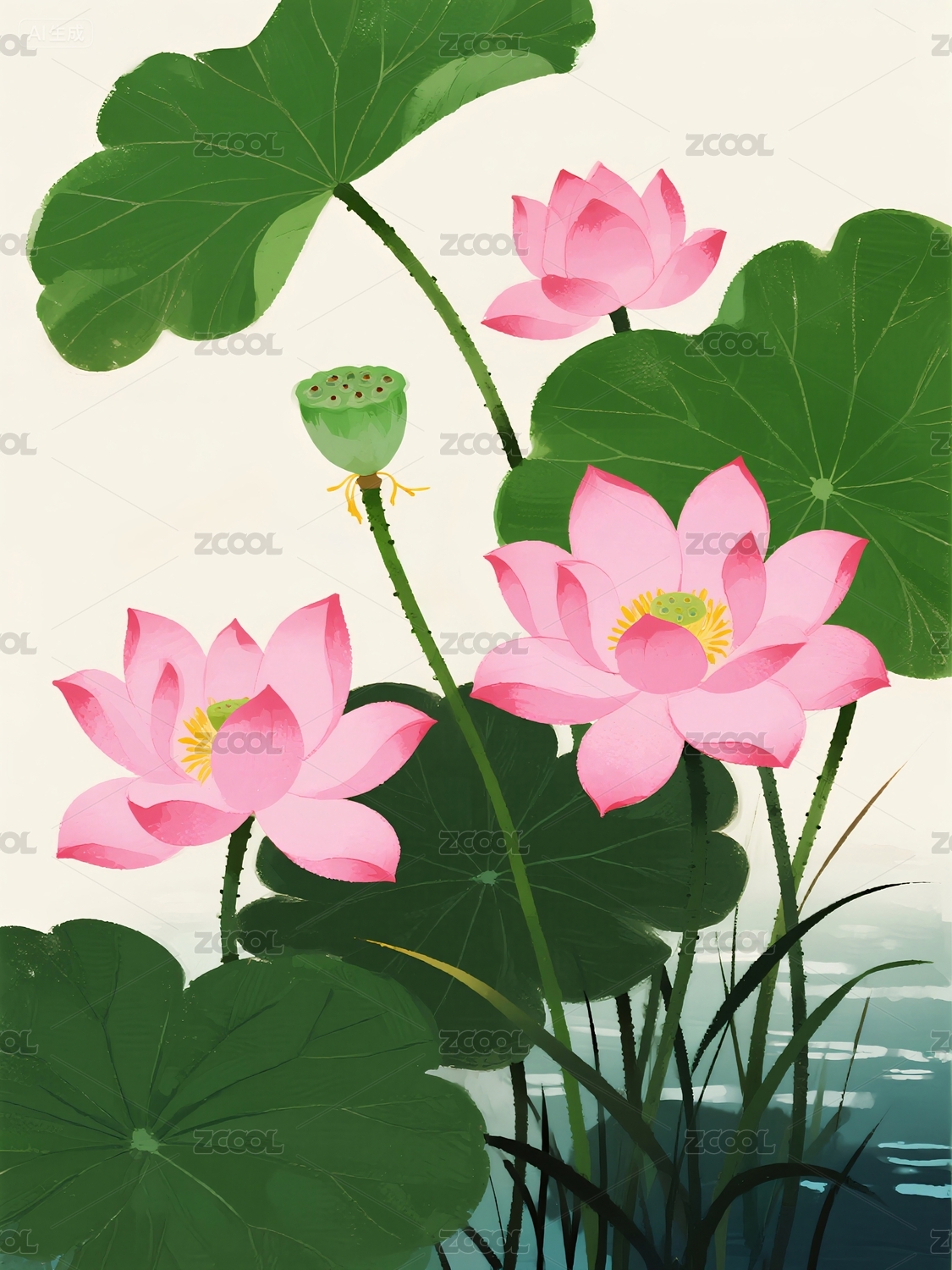 国风荷花莲蓬荷叶插画元素,立夏节气池塘荷