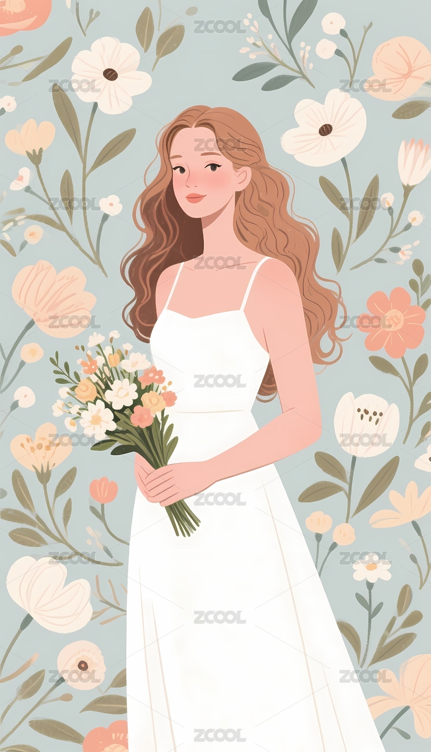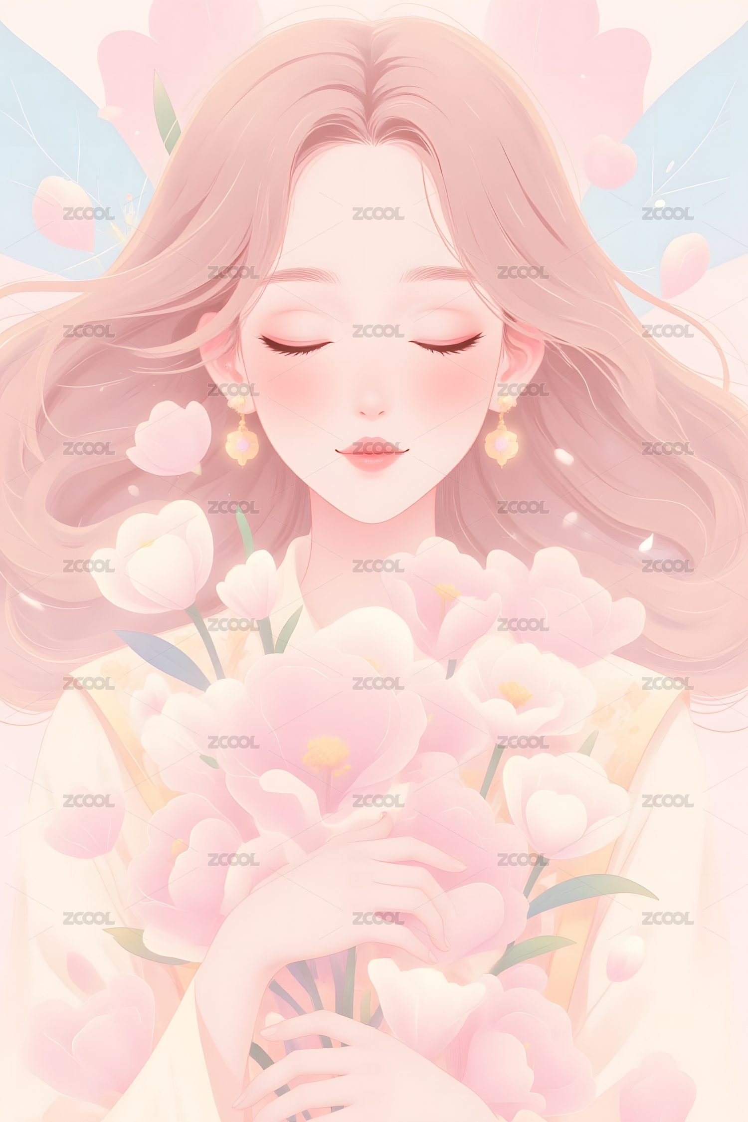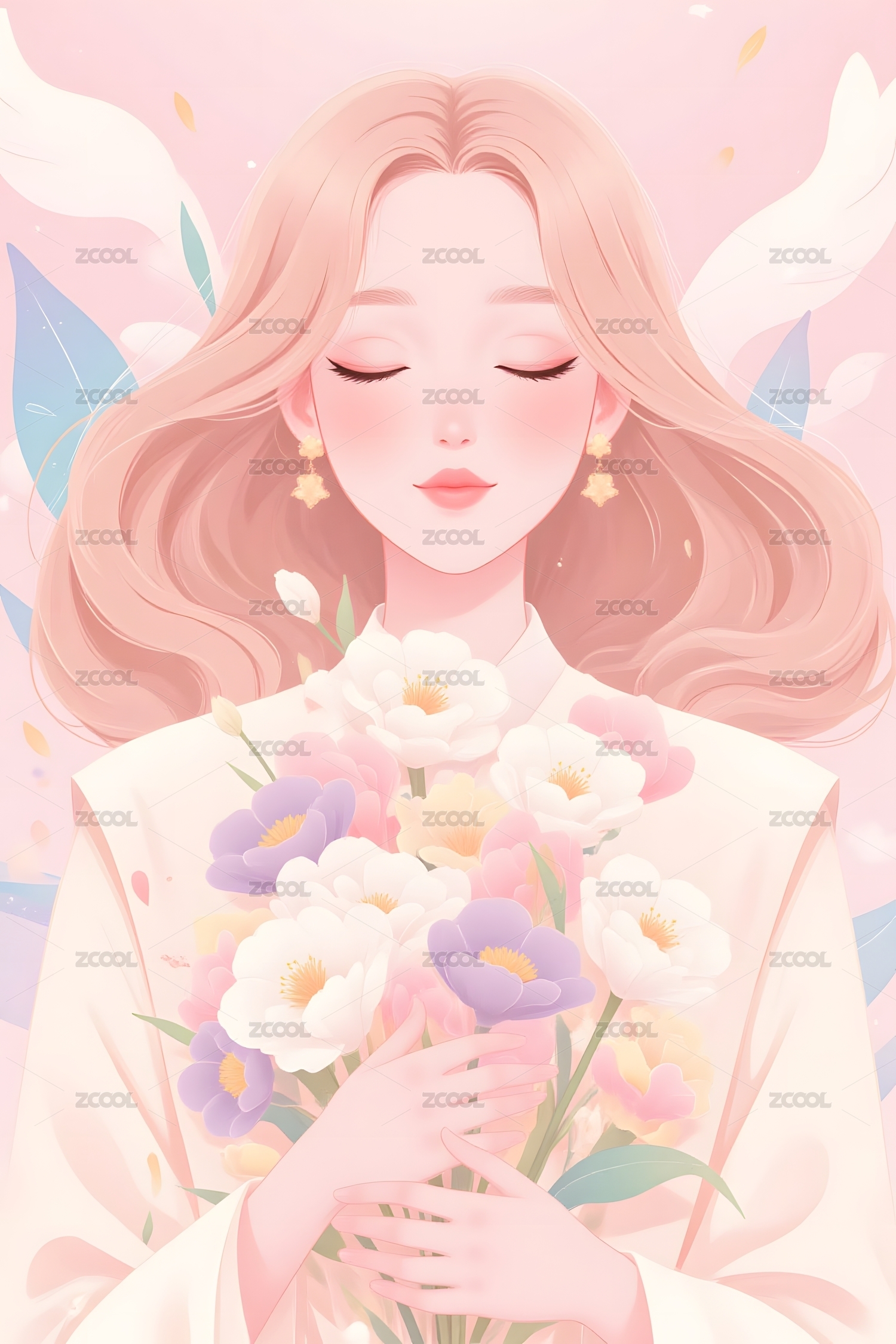 人物,白色,背景,设计,风格,时尚,可爱,粉色,装饰,植物