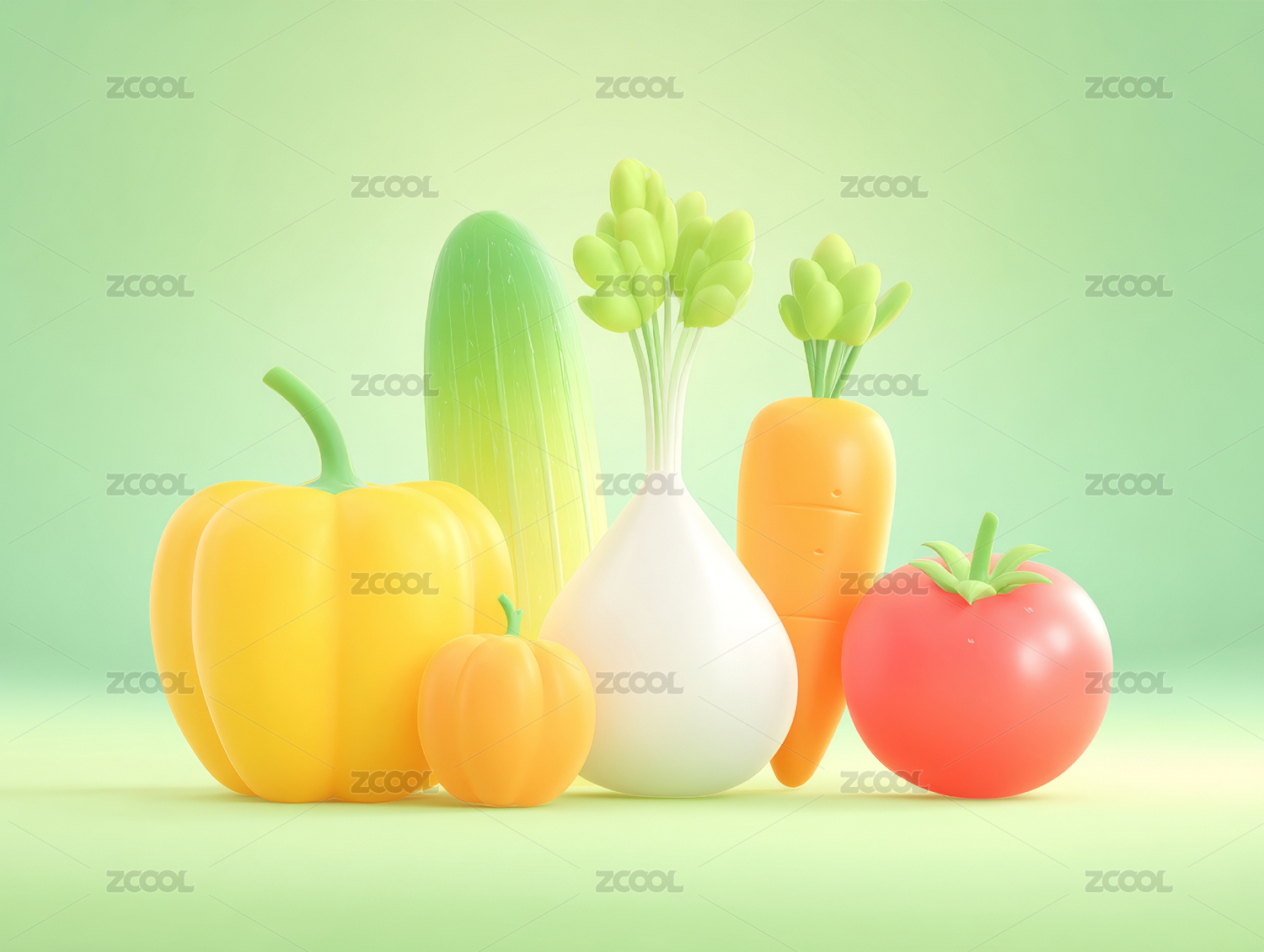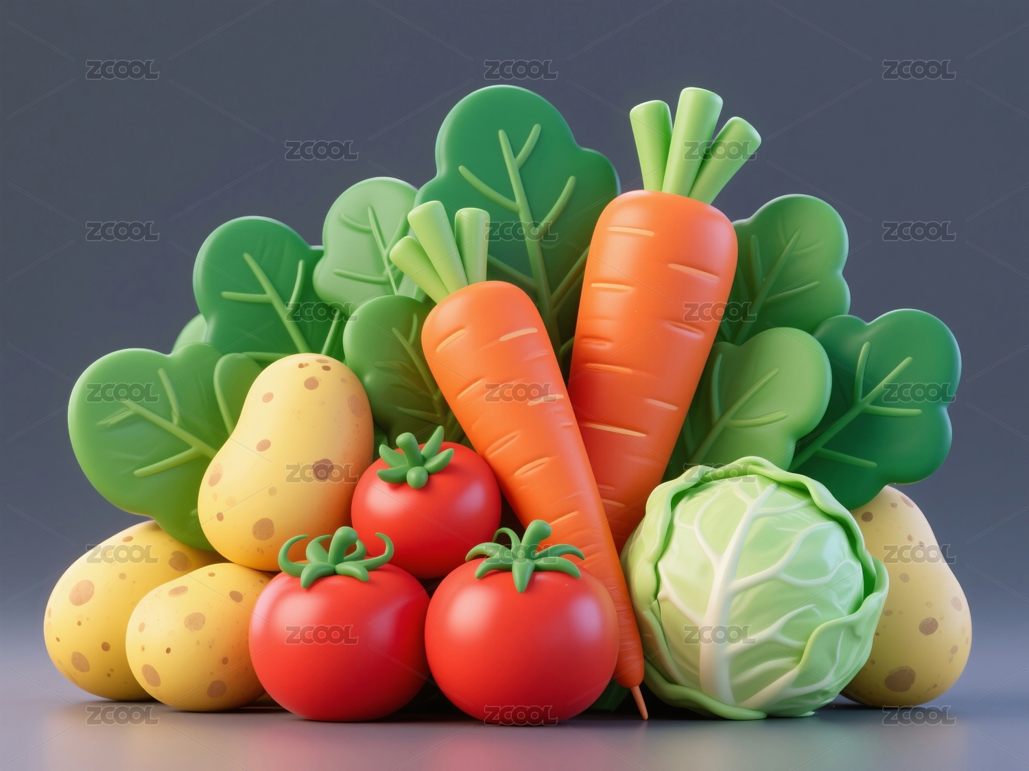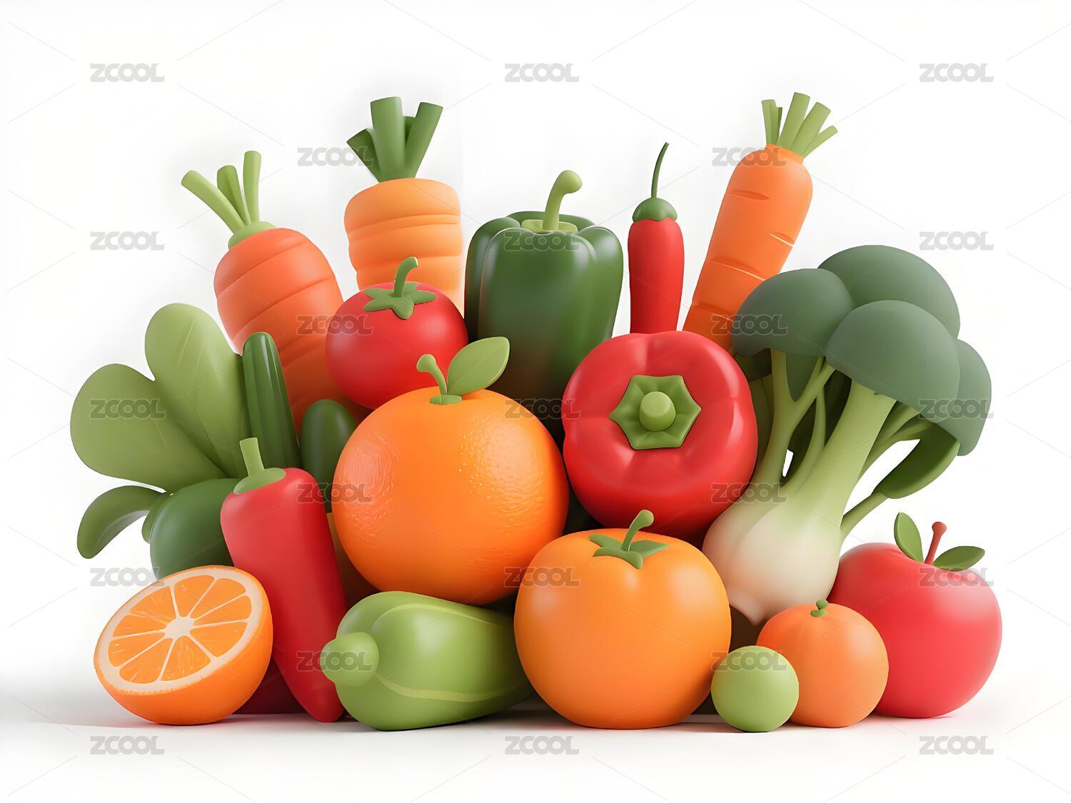 新鲜蔬菜水果产品3D渲染健康食物背景插画