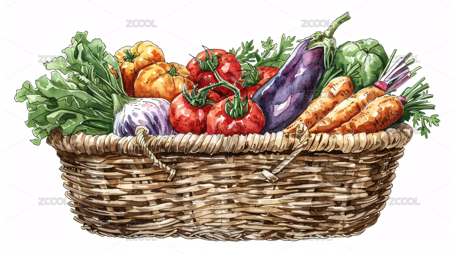 胡萝卜,番茄,蔬菜,篮子,绿色,橙色,新鲜,营养,美味,烹饪