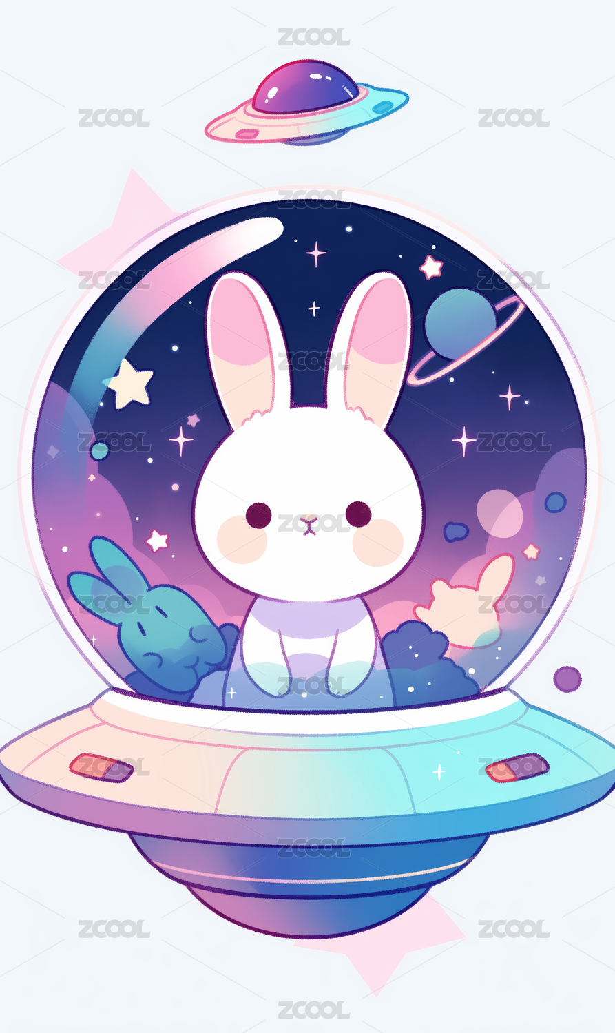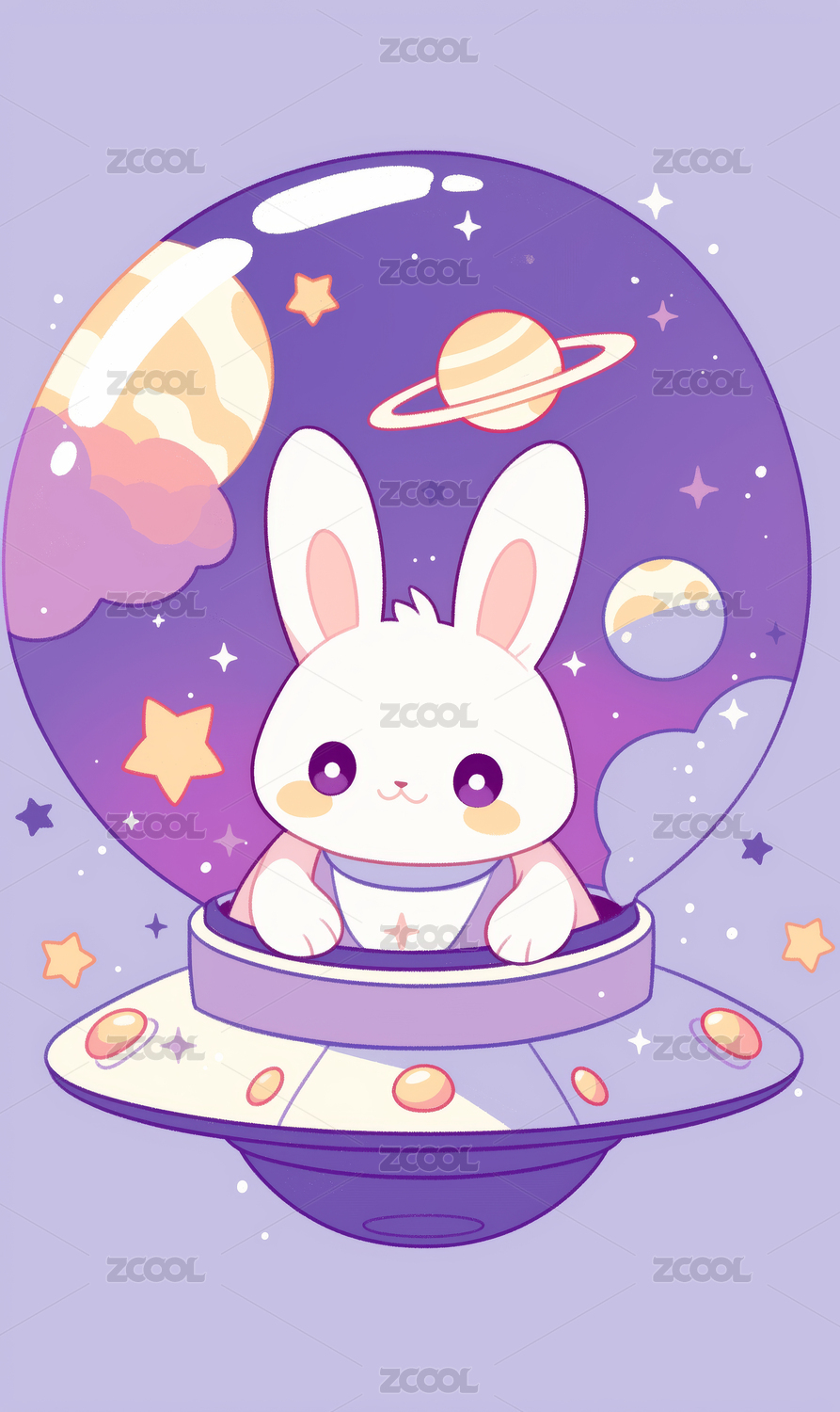 坐飞船的兔子卡通插画