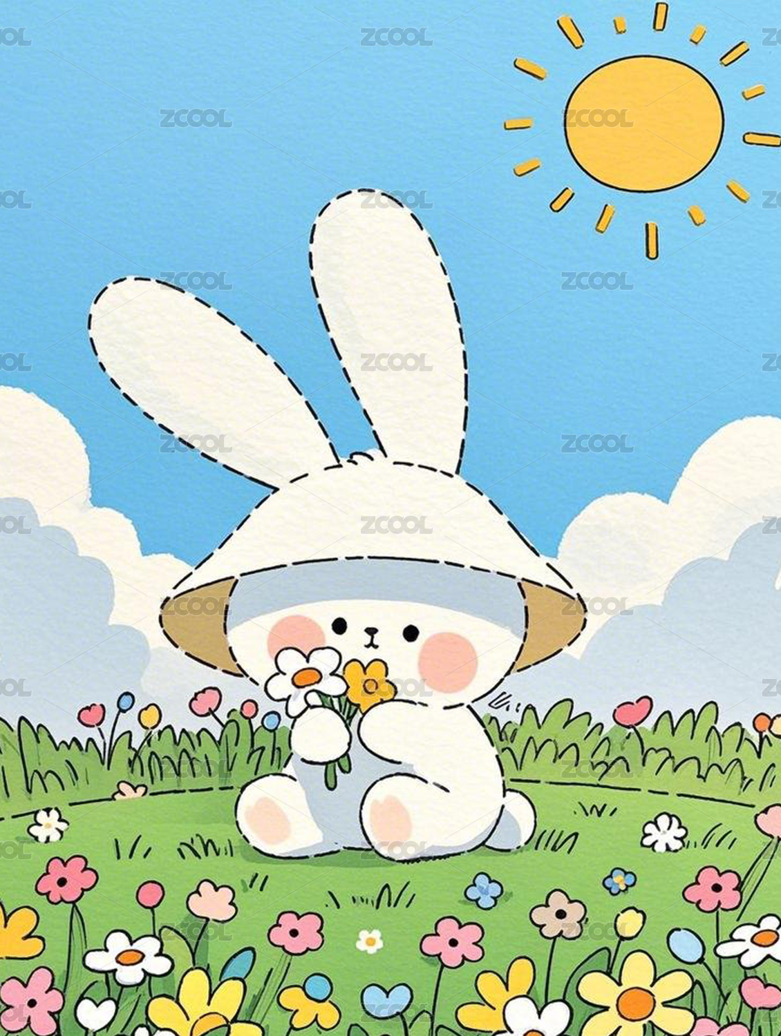 可爱兔子手捧鲜花坐垫
