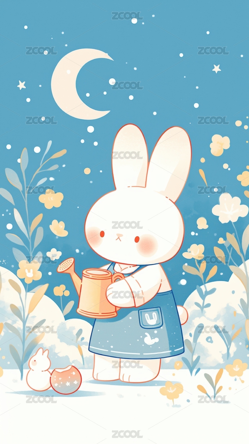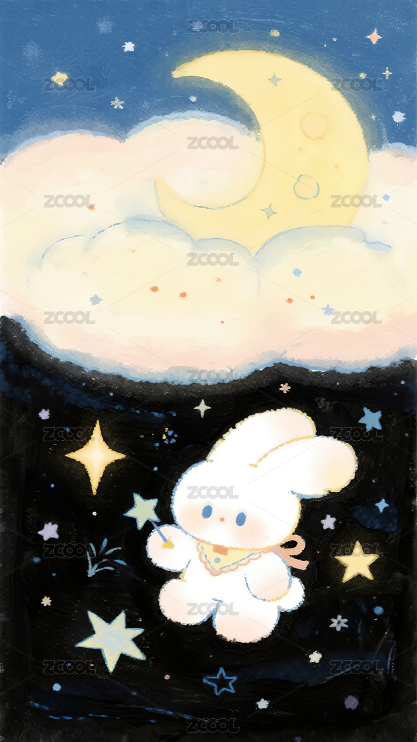 美好,温暖,兔子,蓝色,可爱,甜美,人物,卡通,清晰,星星