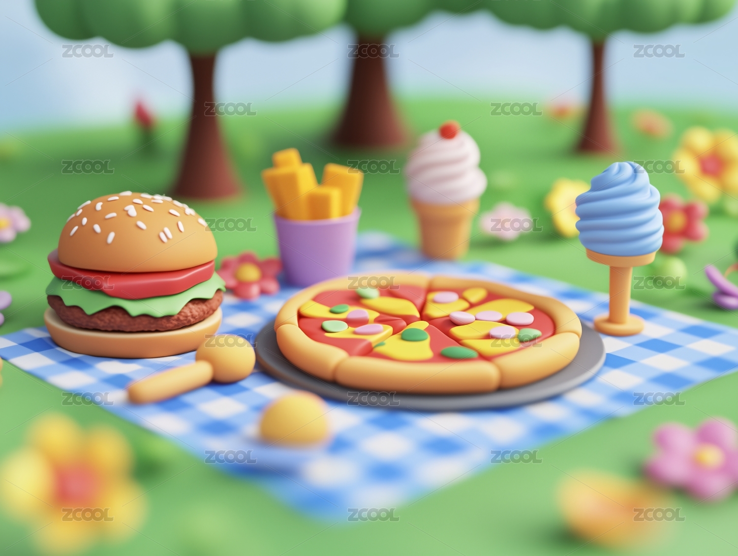 草地,户外,兔子,甜点,粉色,蓝色,红色,可爱,摆拍,蛋糕
