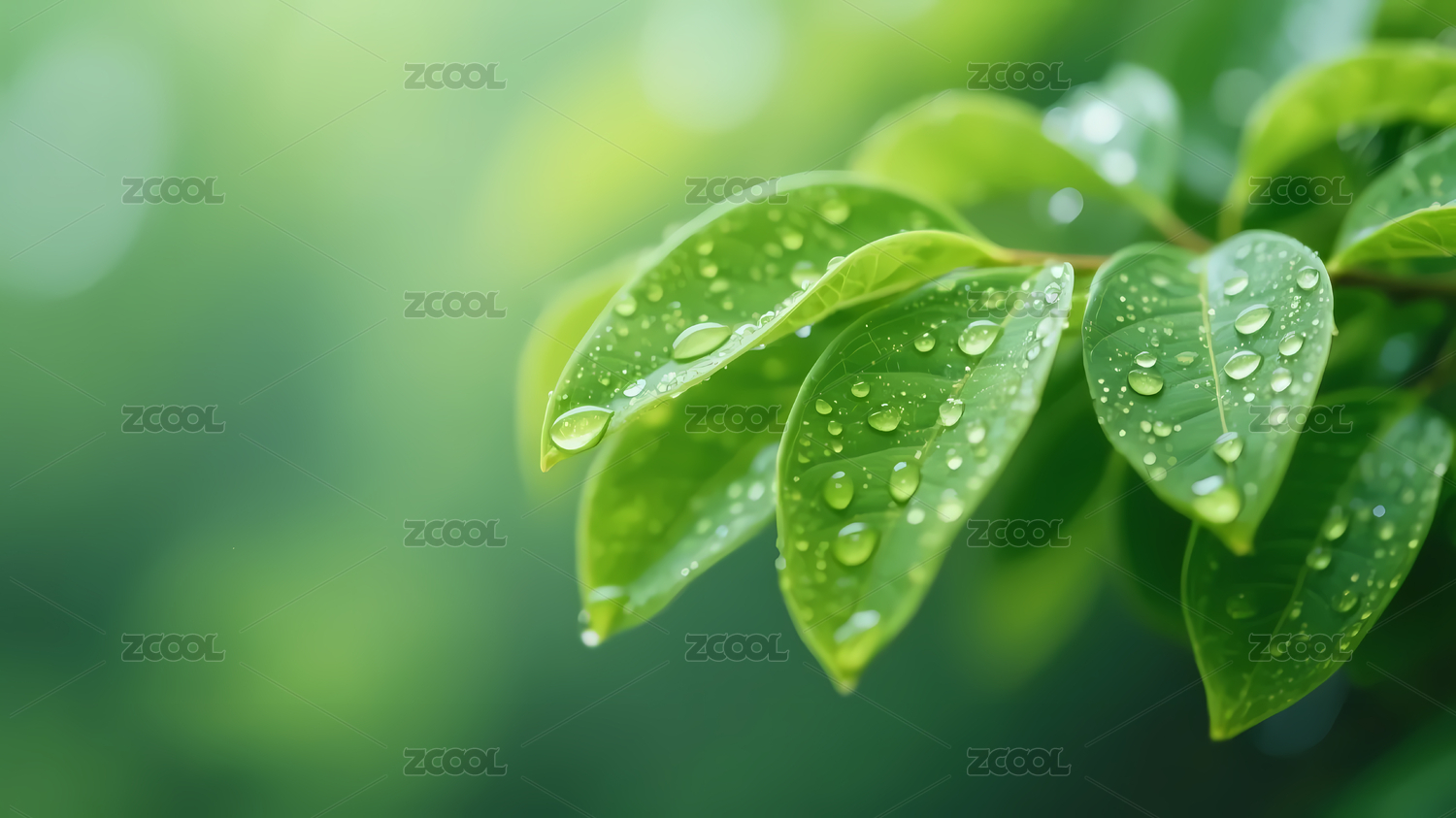 模糊,背景,绿色,植物,自然,清新,叶子,水珠,晶莹