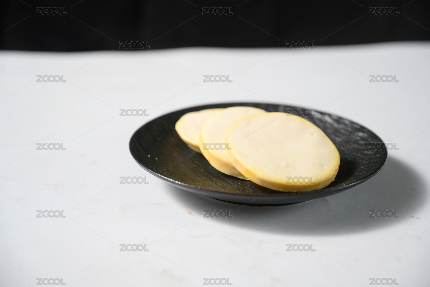 桌面上的盘子里的美味可口的白巧克力橙子片
