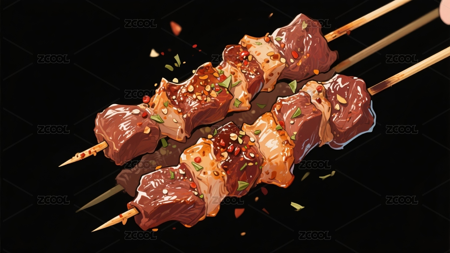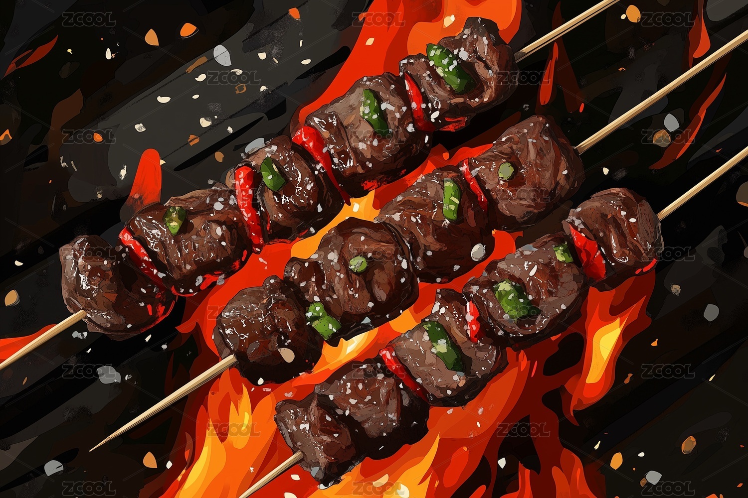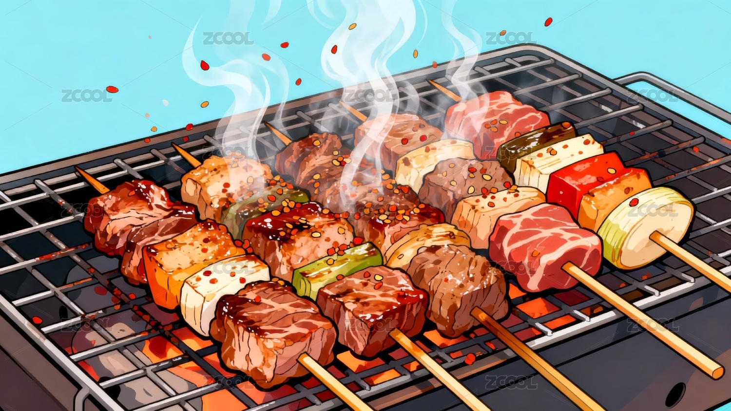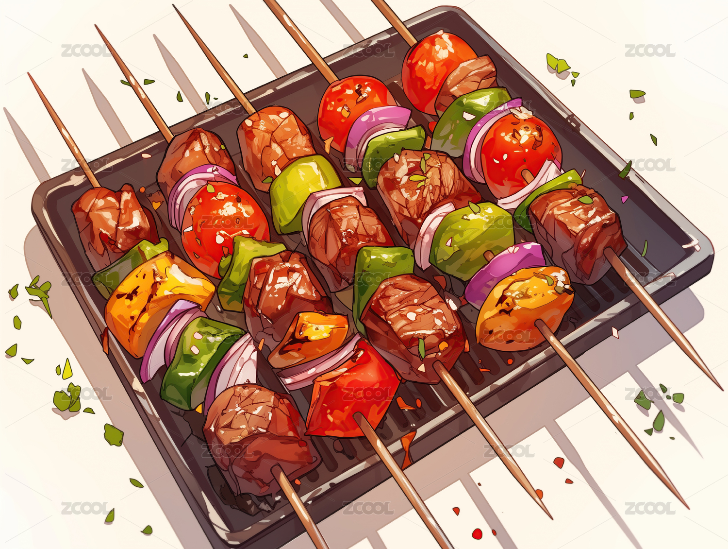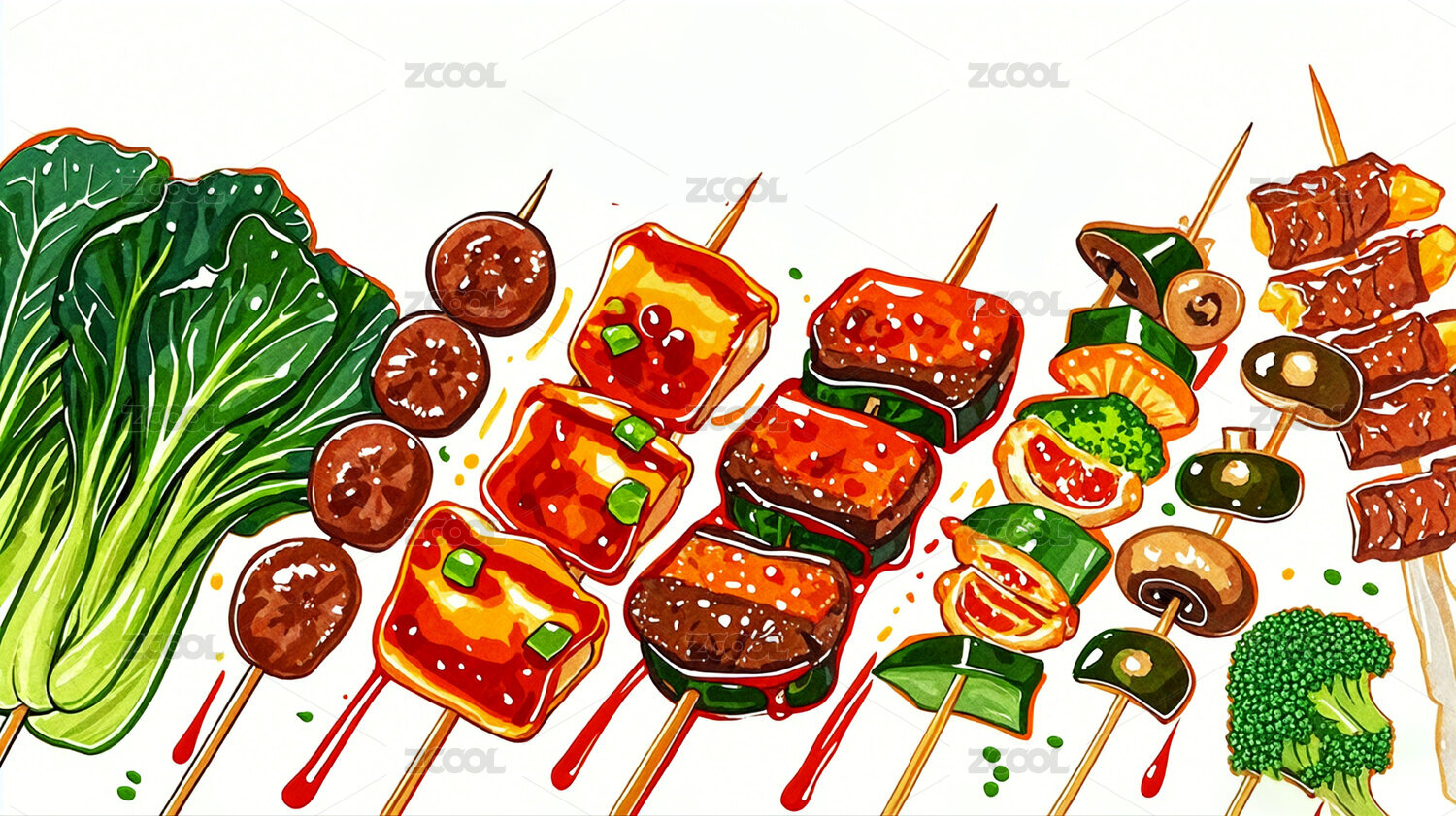 水彩风味烤串的诱惑