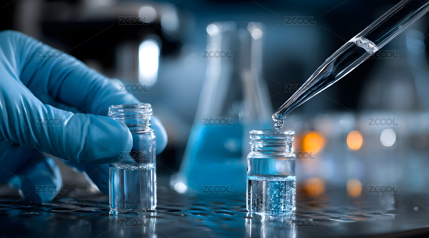 科学家在实验室用移液器转移液体