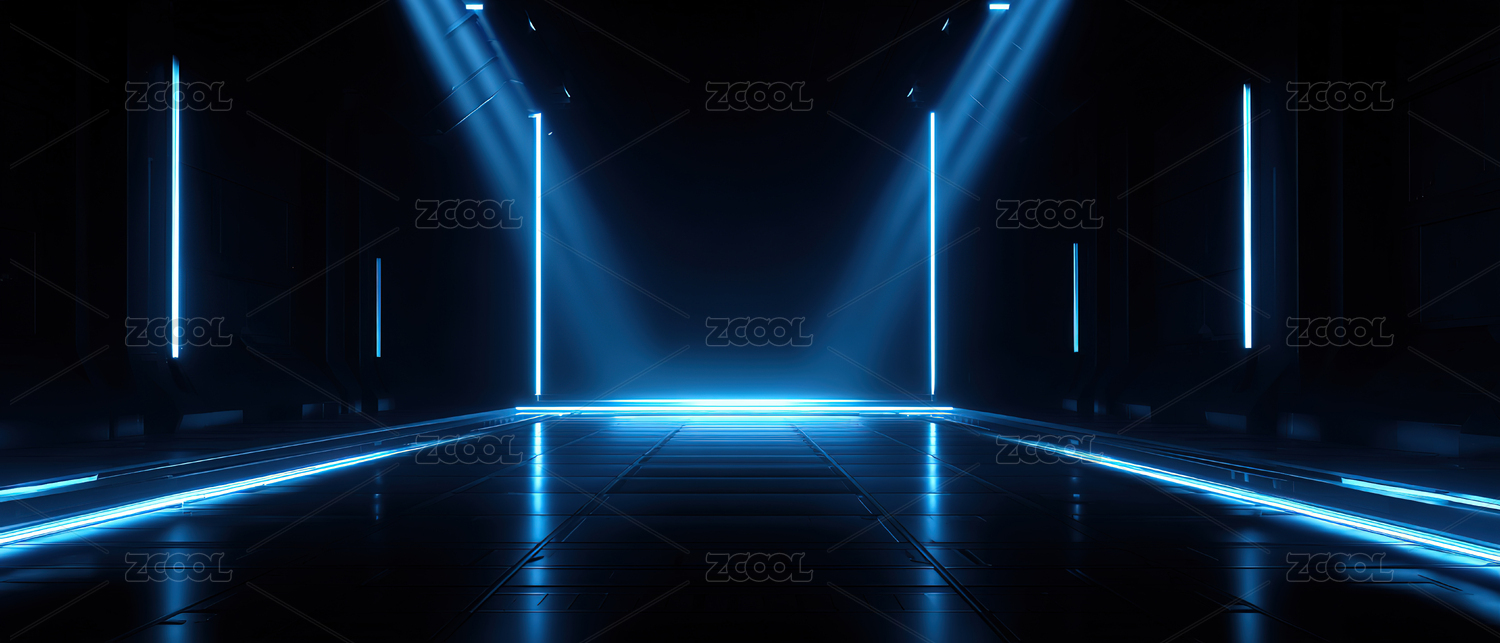 蓝色霓虹灯照亮的未来感舞台