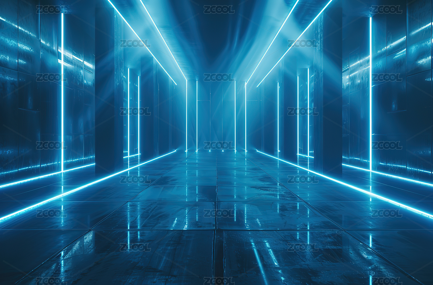 蓝色光线构成的未来科技走廊
