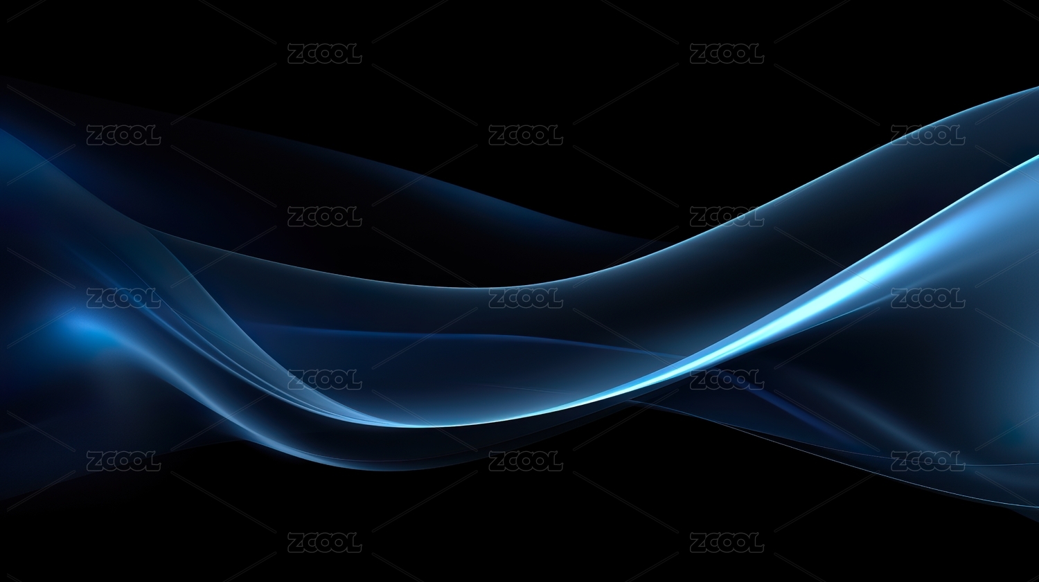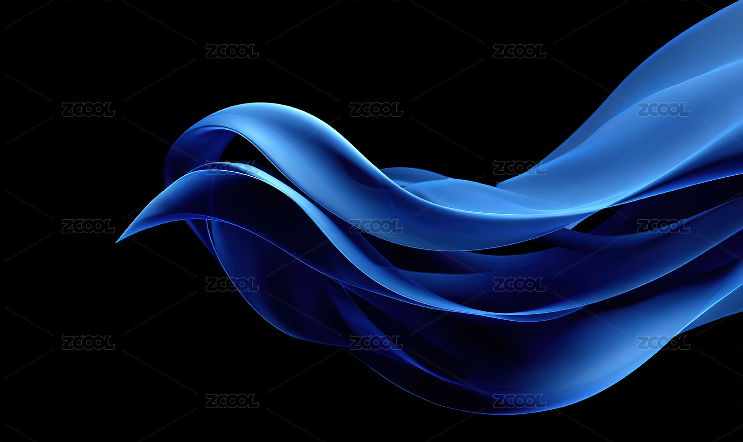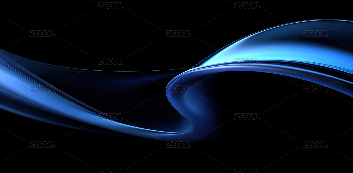 深蓝色抽象线条在黑色背景中流动