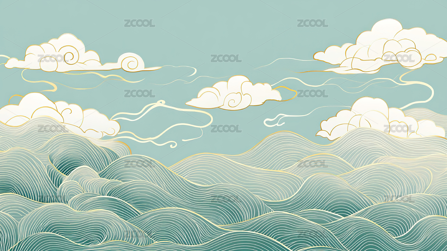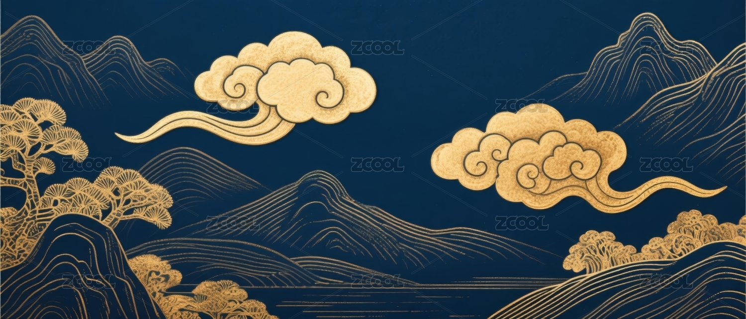 国风祥云山水图