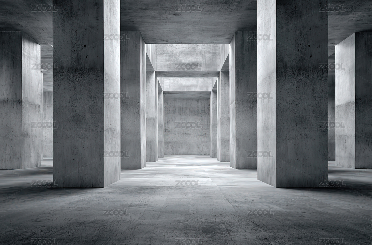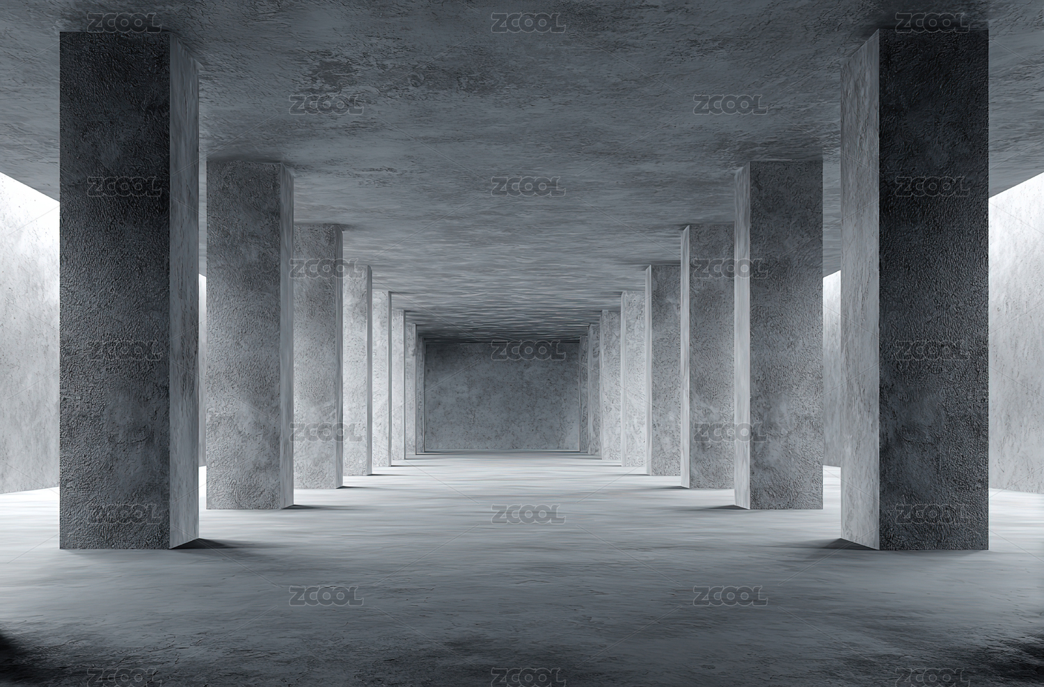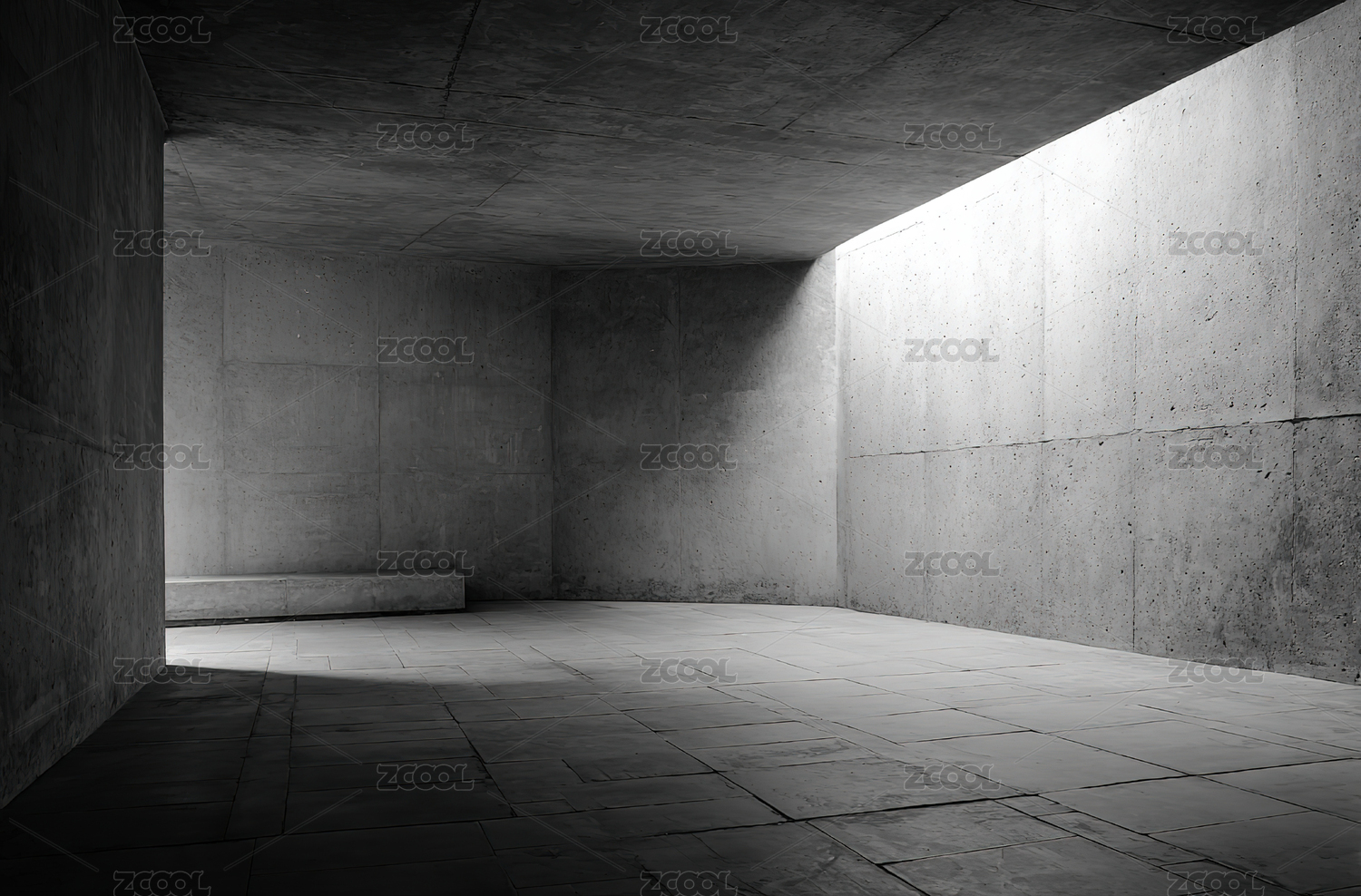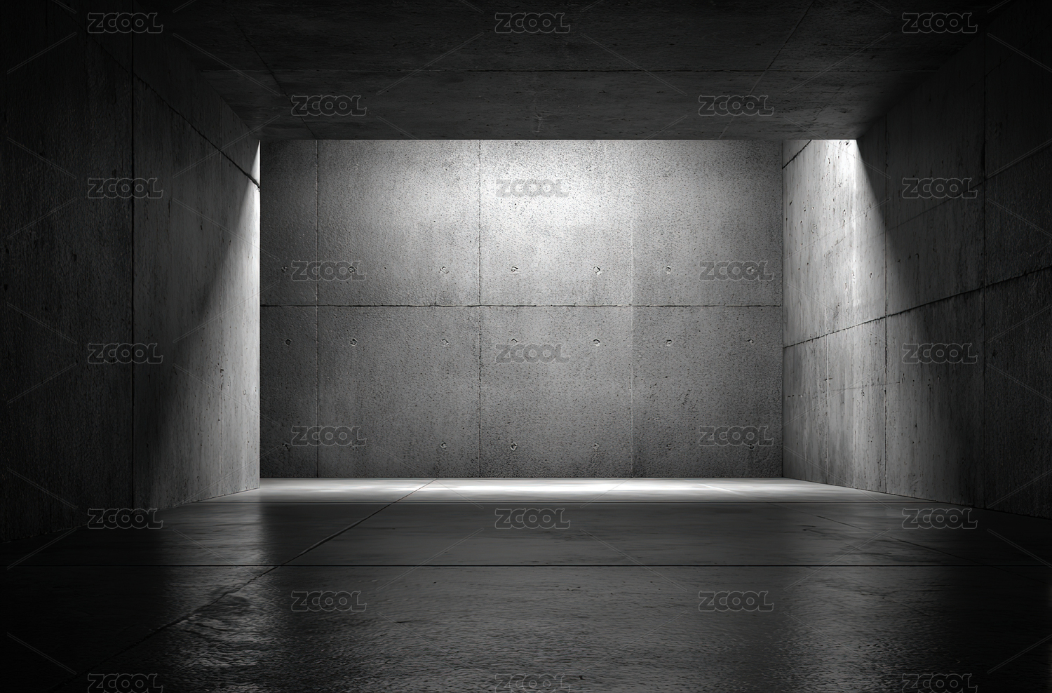 空旷的废弃的昏暗水泥仓库房间,地下室