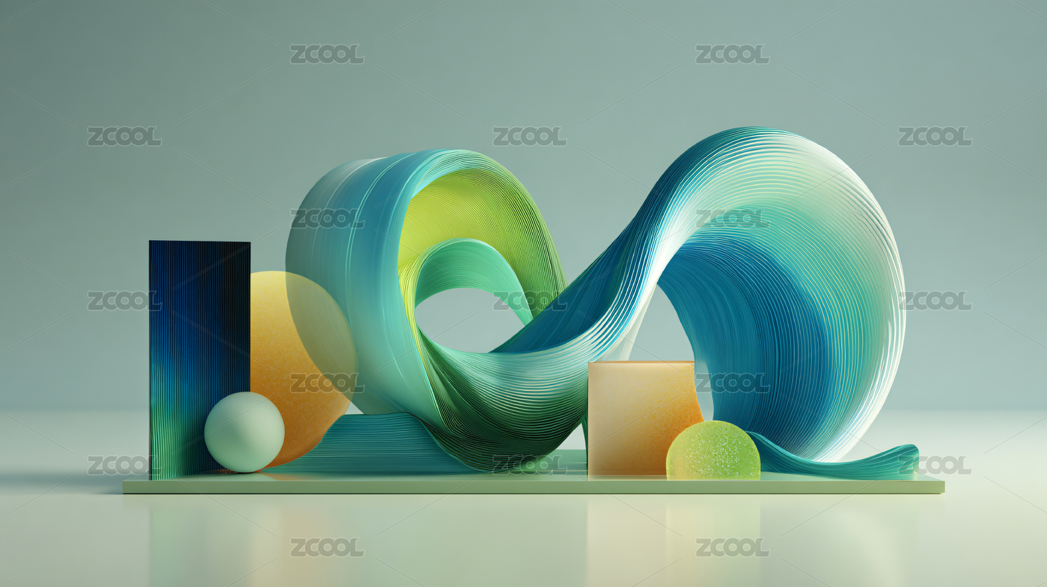 抽象球体与飘带艺术氛围