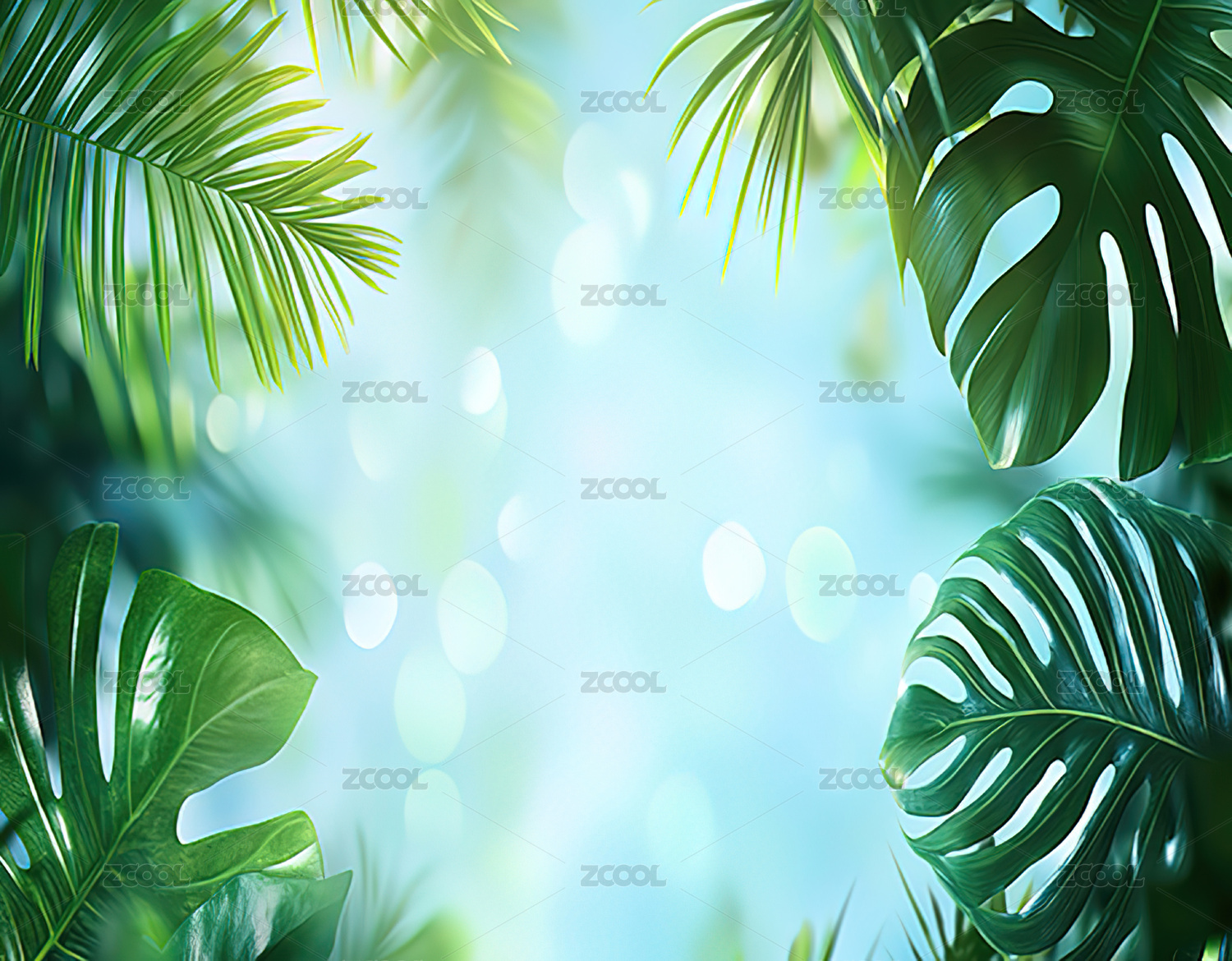 植物叶子图案夏季绿色自然美丽设计壁纸背景