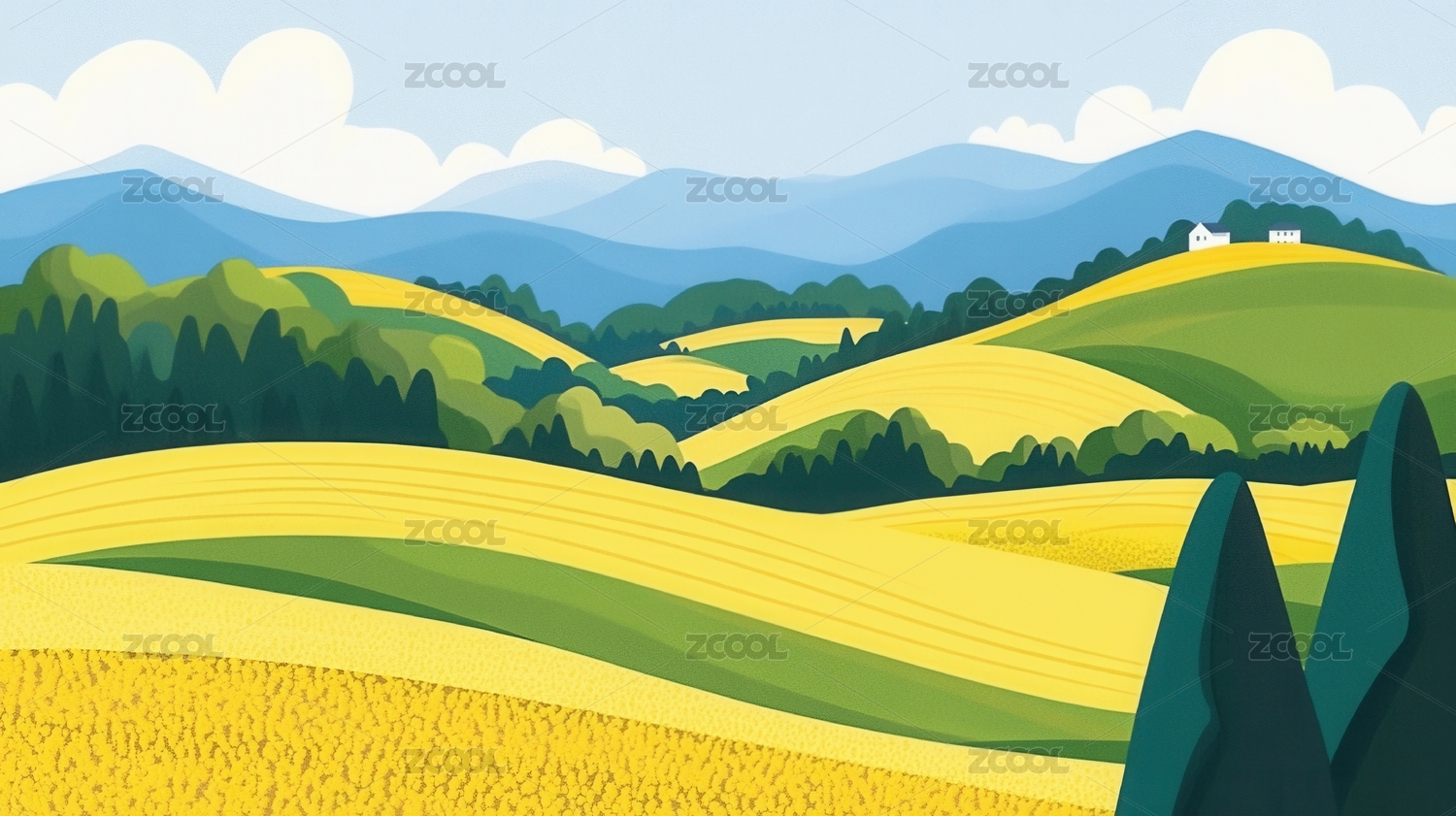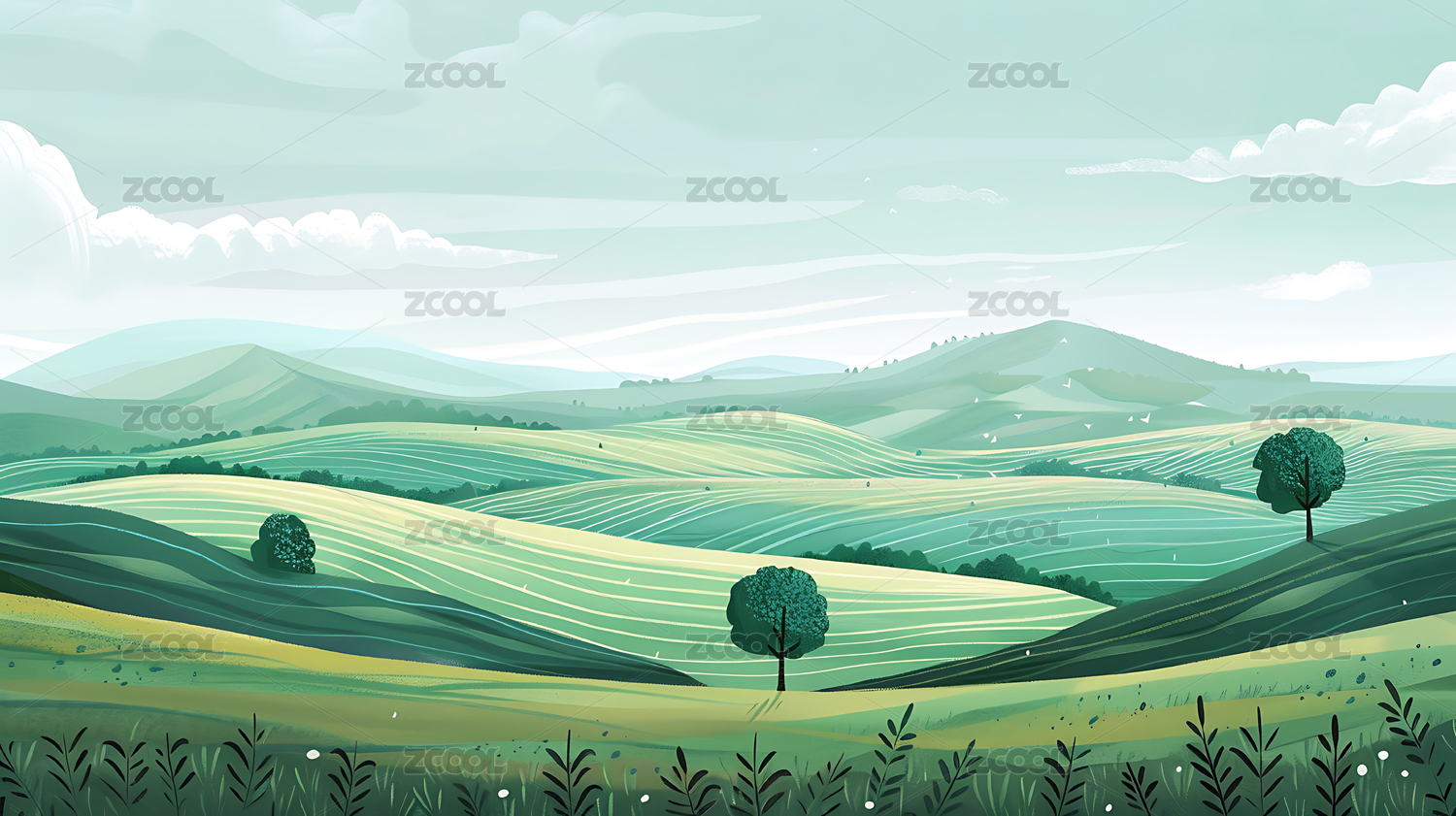 自然,风景,树木,绿色,宁静,美丽,夏天,山谷,艺术,绘画