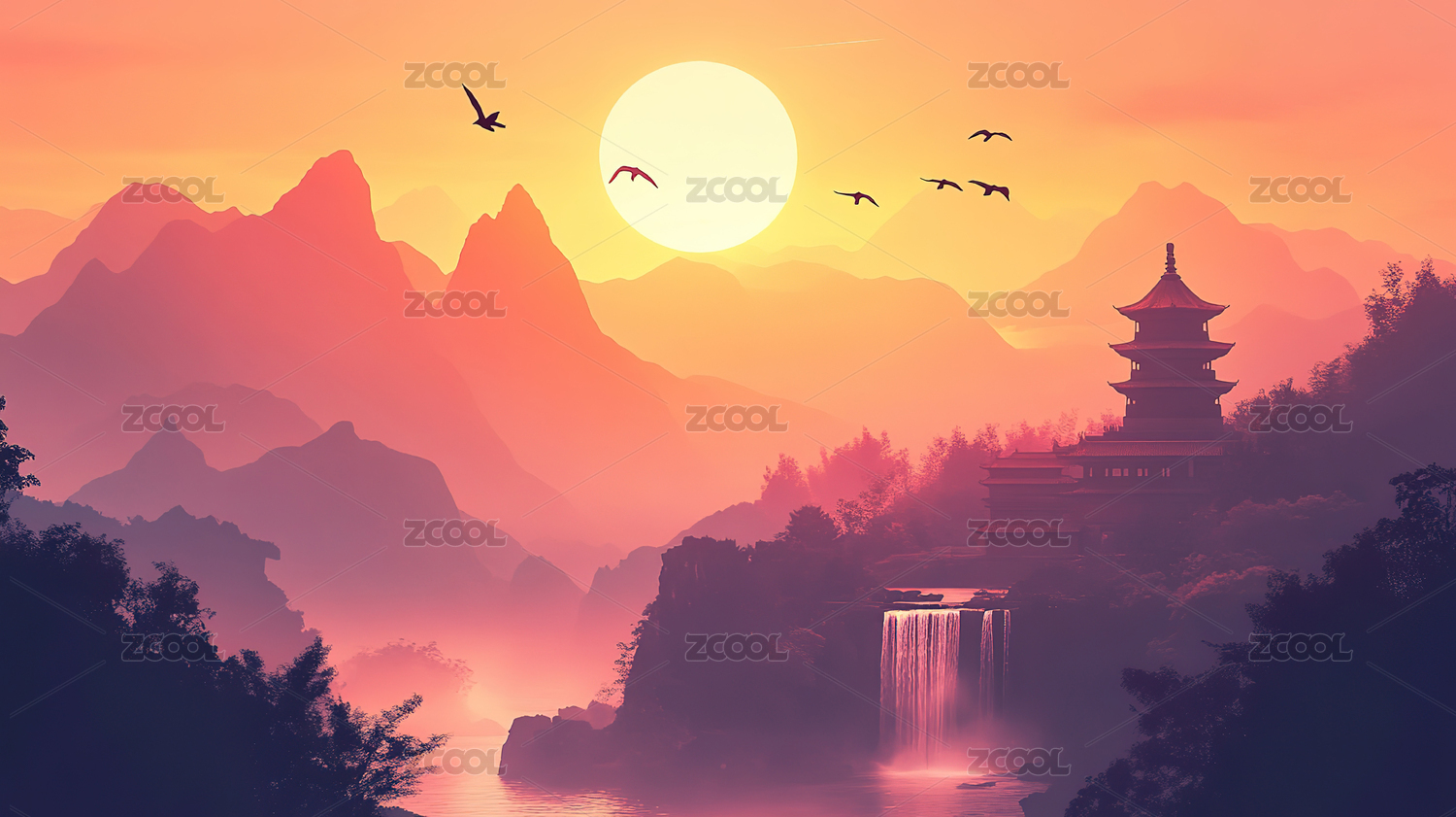 中国风唯美意境山水画