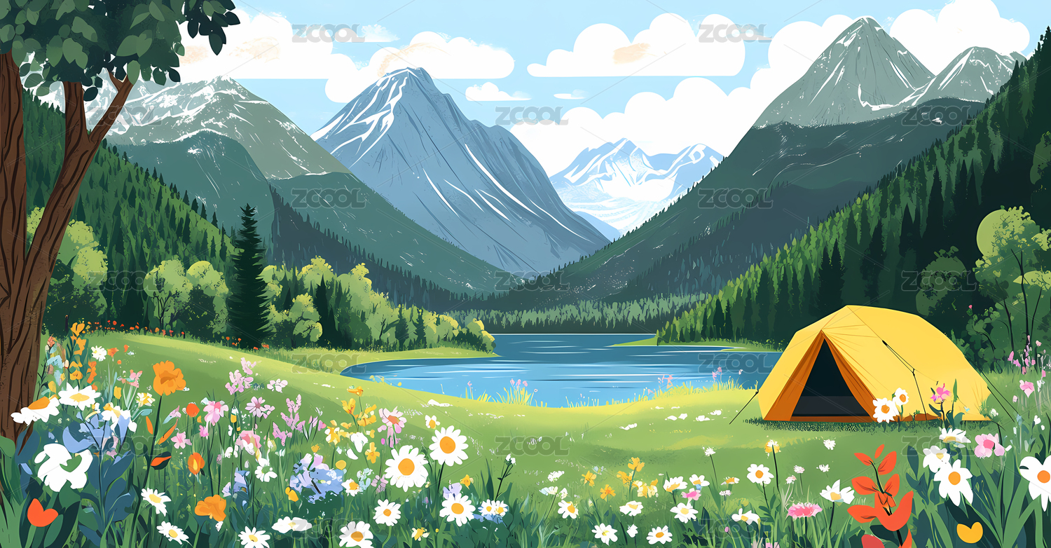色彩,自然,风景,湖泊,夏天,绿色,云彩,宁静,美丽,景色