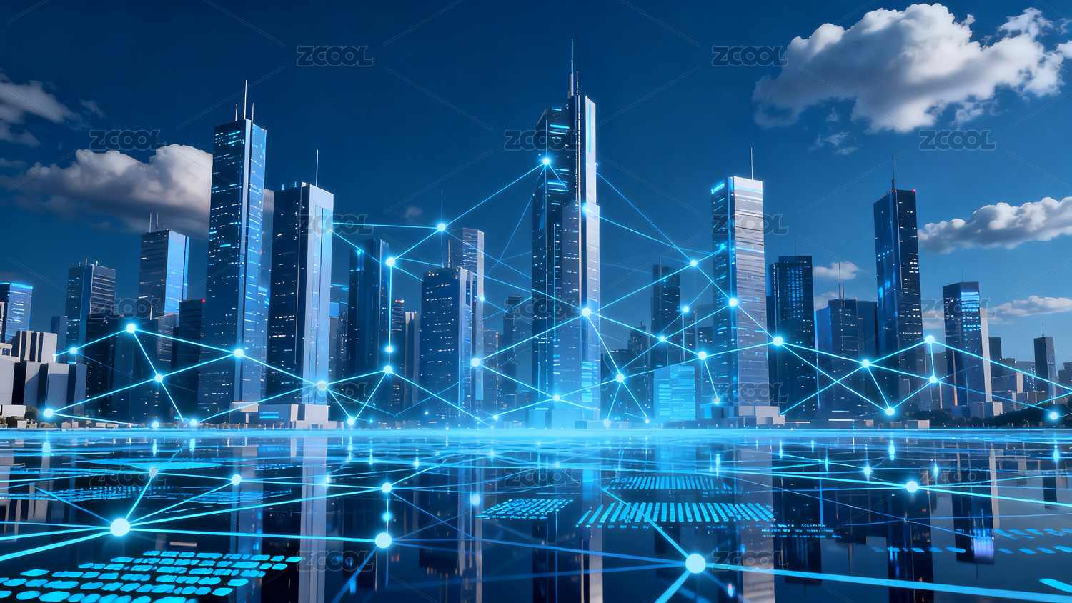 城市,科技,网络,未来感,数字化,天际线,智慧城市,蓝色调,高楼大厦