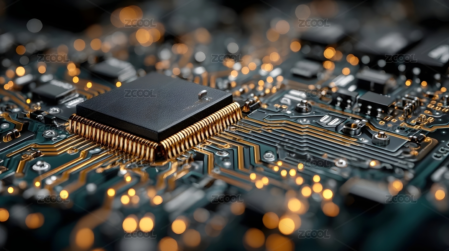 现代,电路板,线路,芯片,科技感,精密,高科技,焊点,金黄色,金线