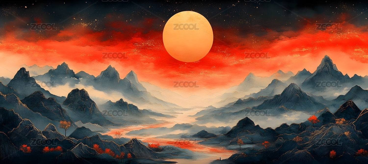 山脉,远山,山峦,树木,自然,风景,宁静,背景,山谷,云雾