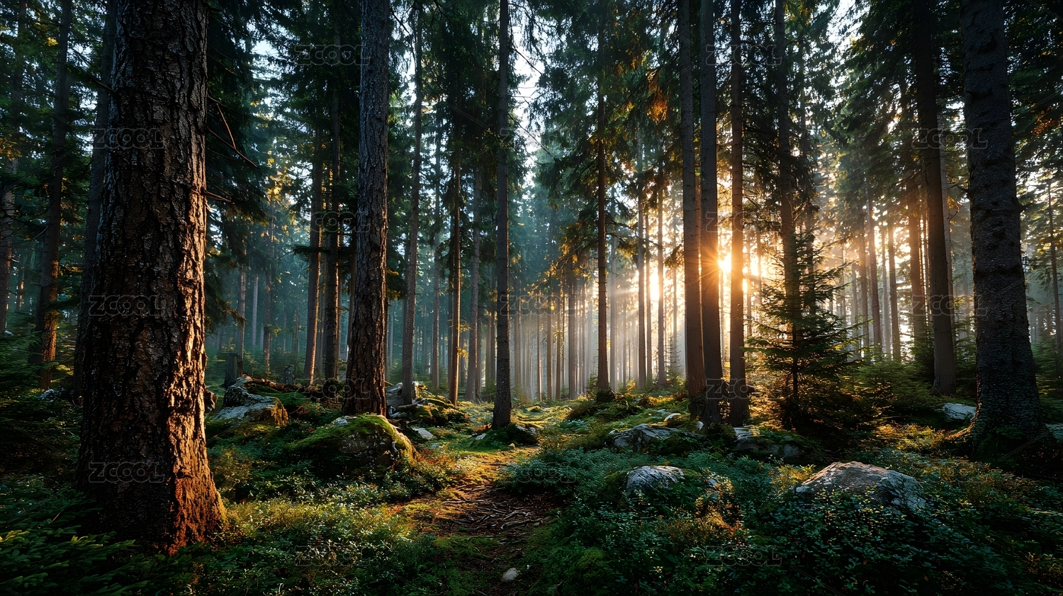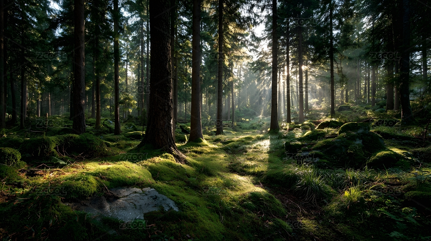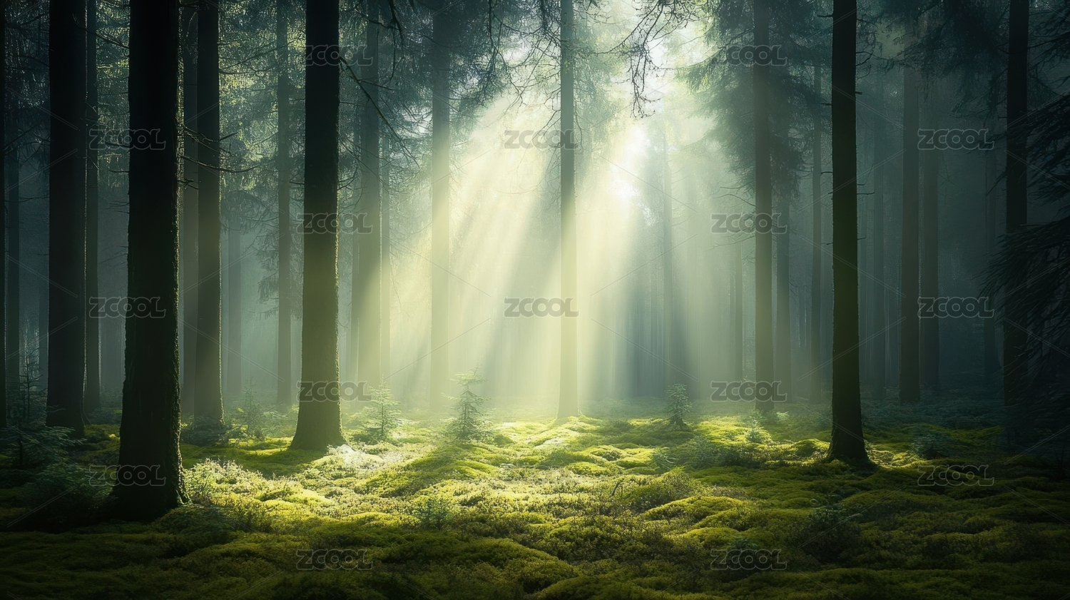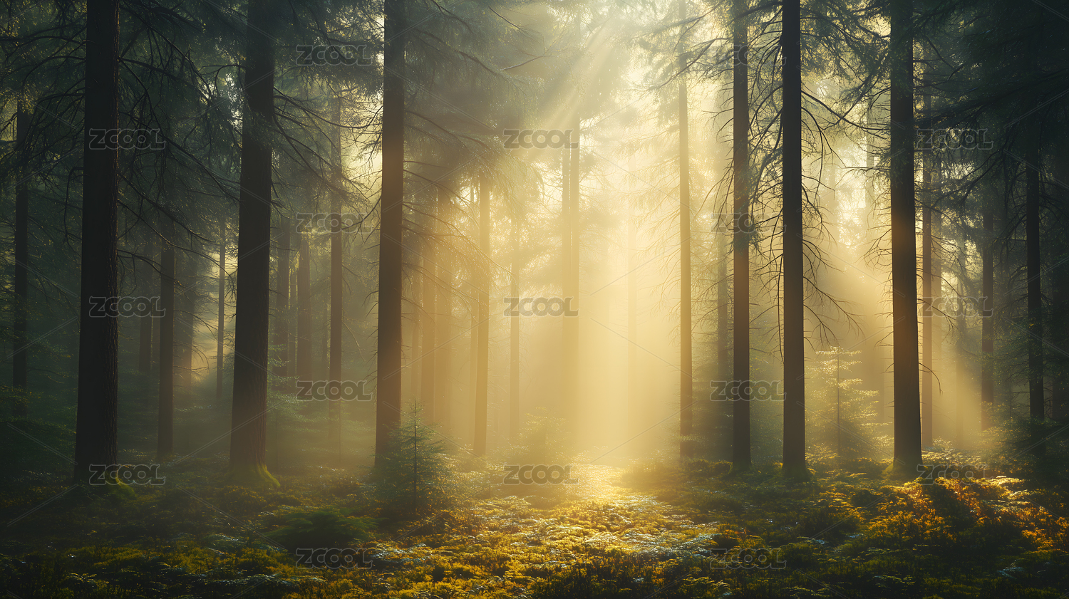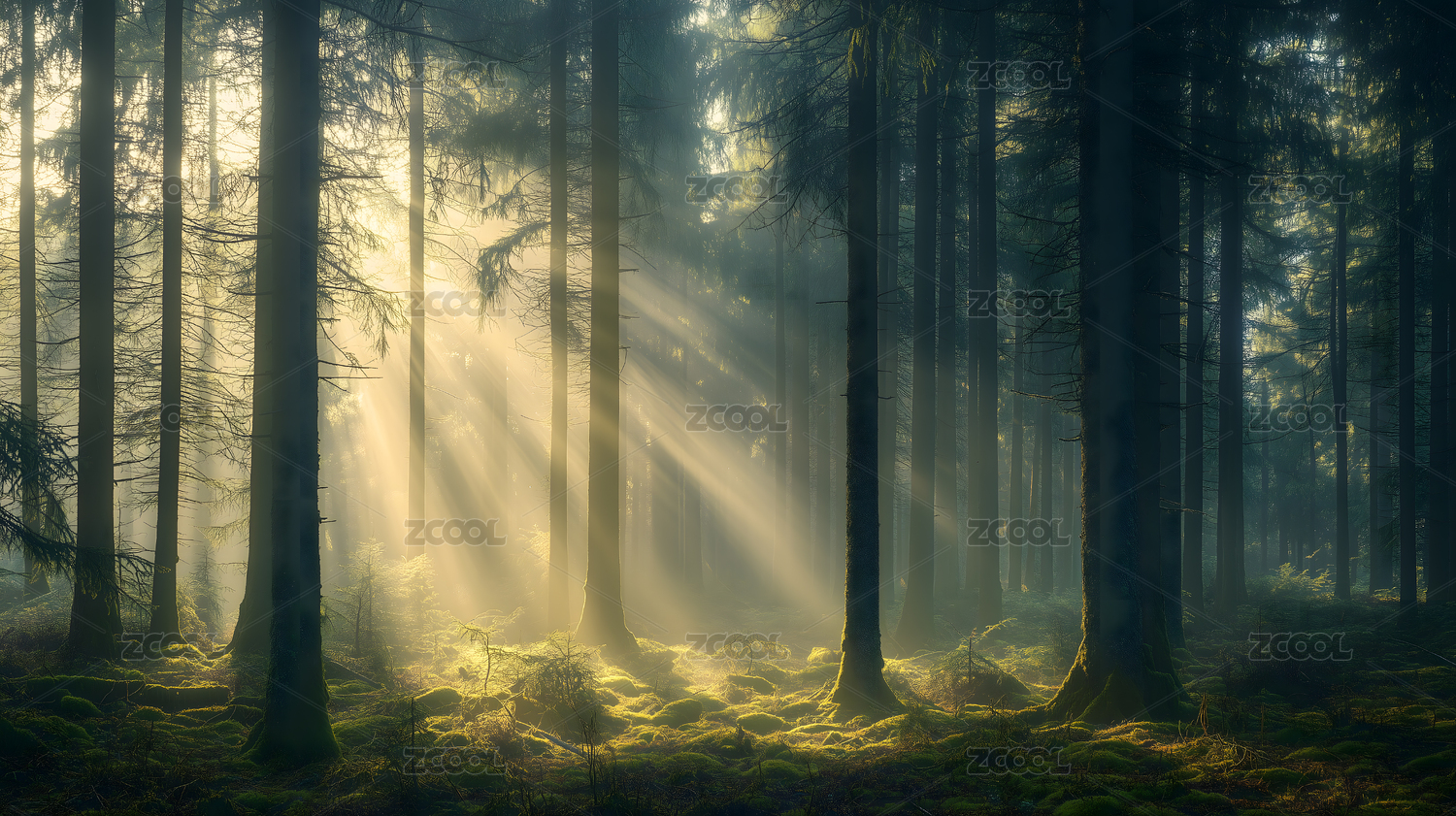 树木,自然,草地,环境,宁静,树冠,阳光,雾气,阴影,光线