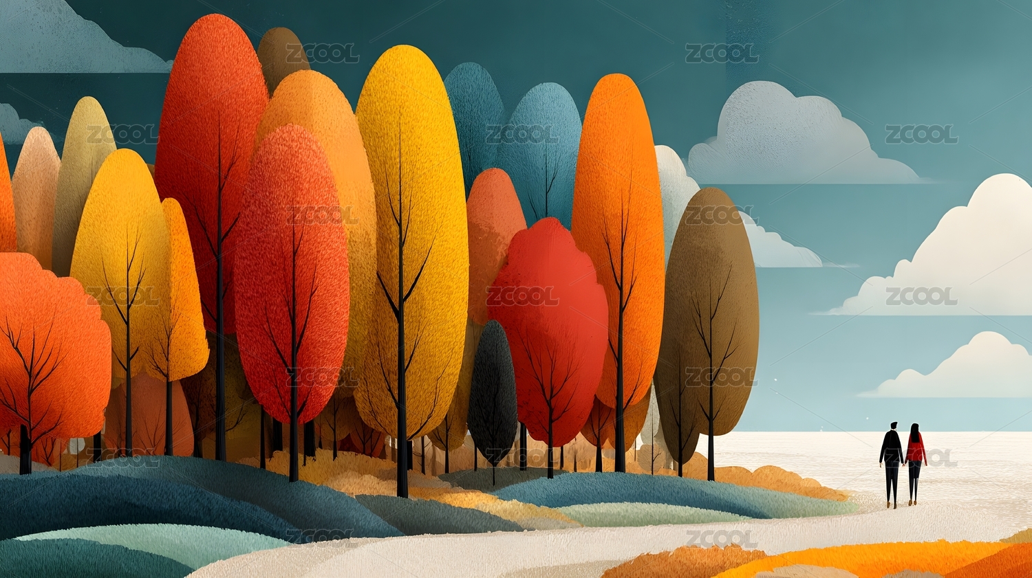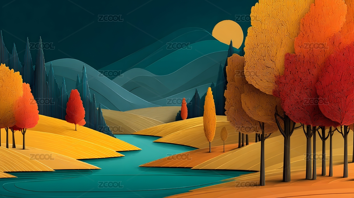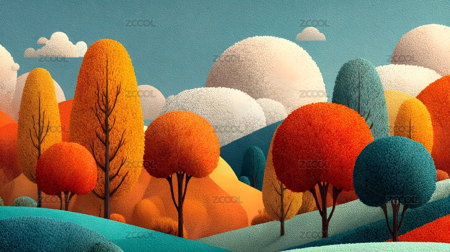 树木,自然,天空,风景,地平线,色彩,背景,蓝色,层次,艺术