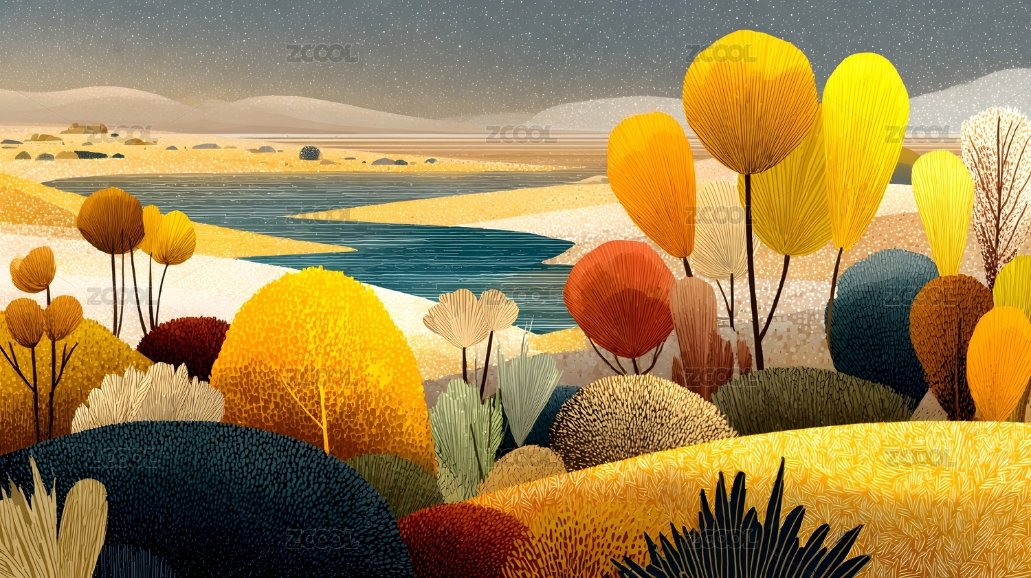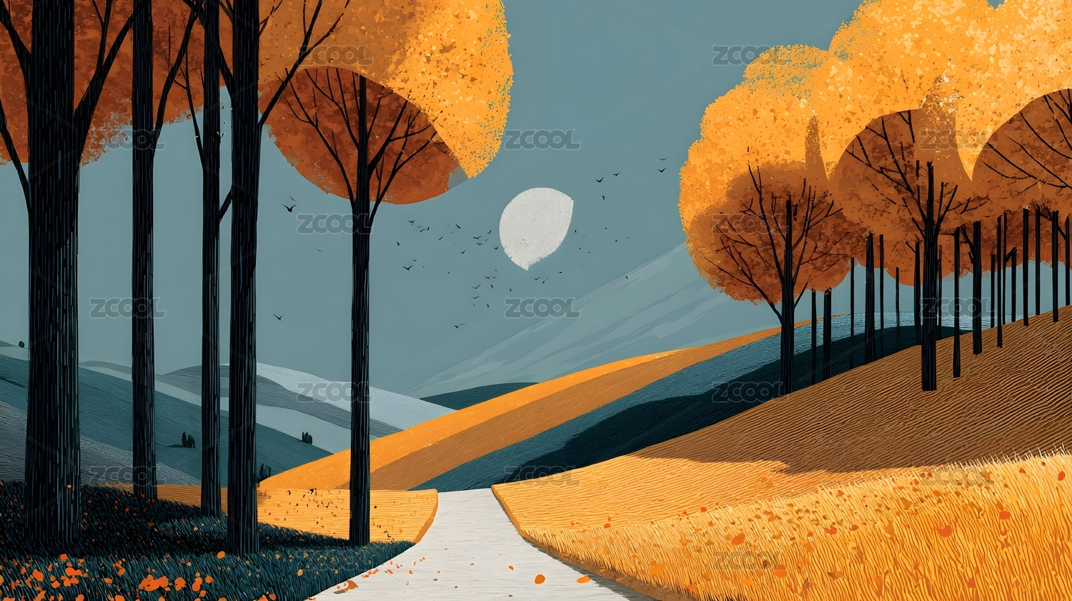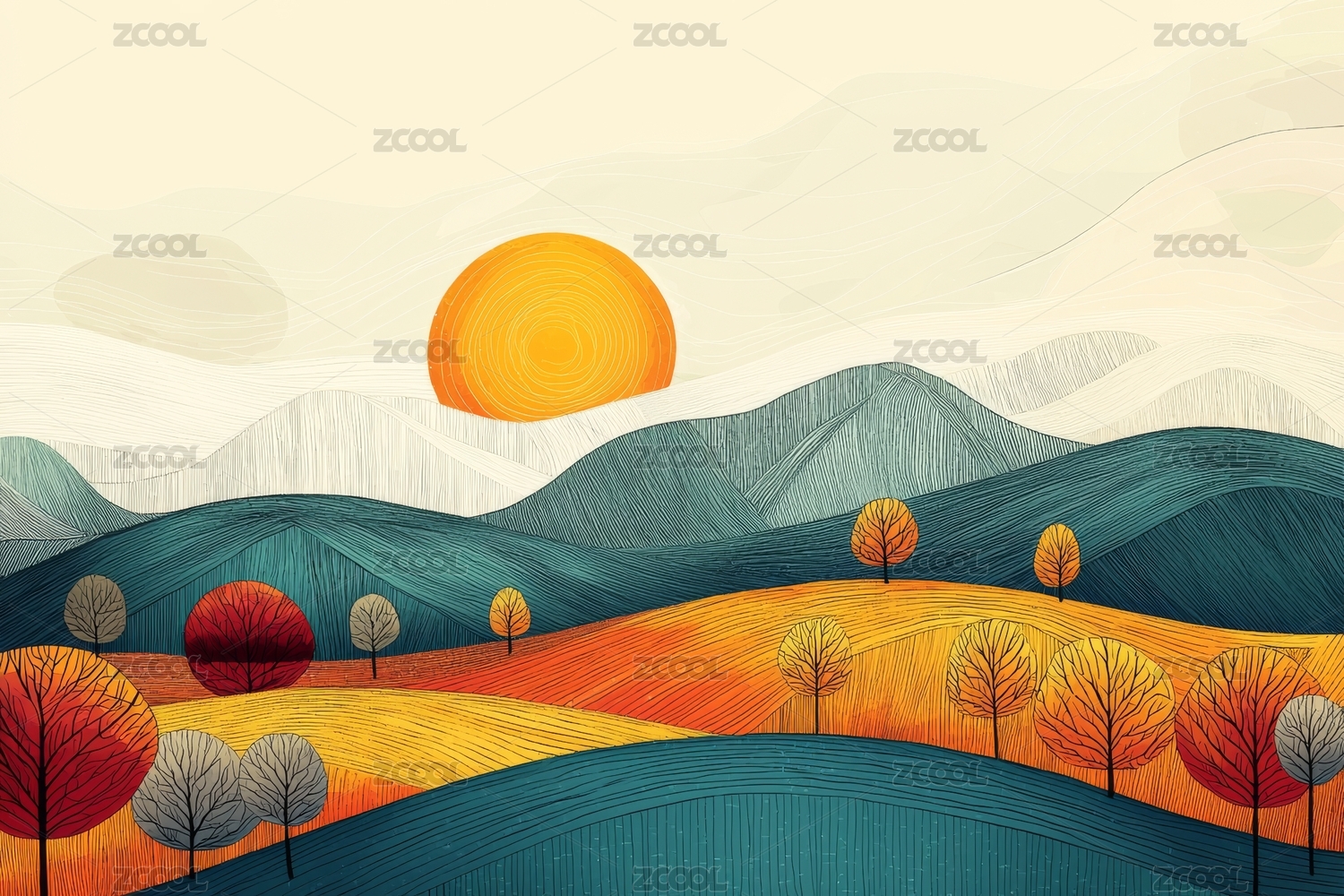 树木,自然,天空,风景,地平线,色彩,背景,蓝色,层次,艺术
