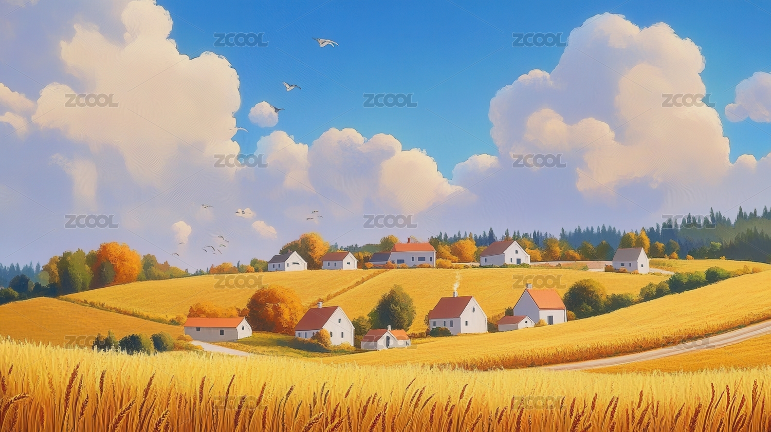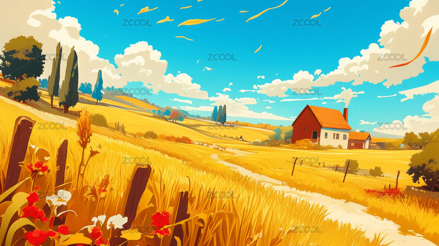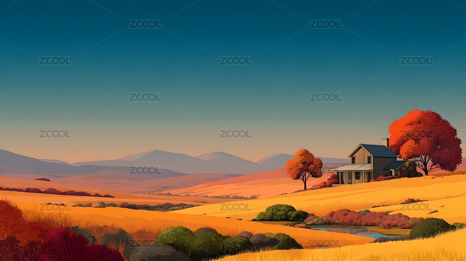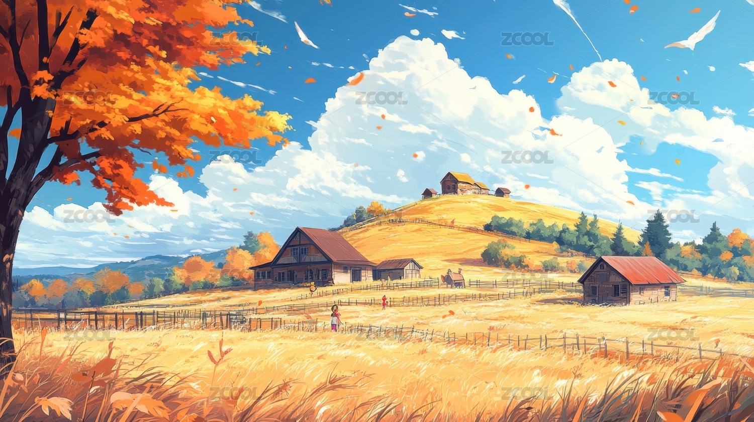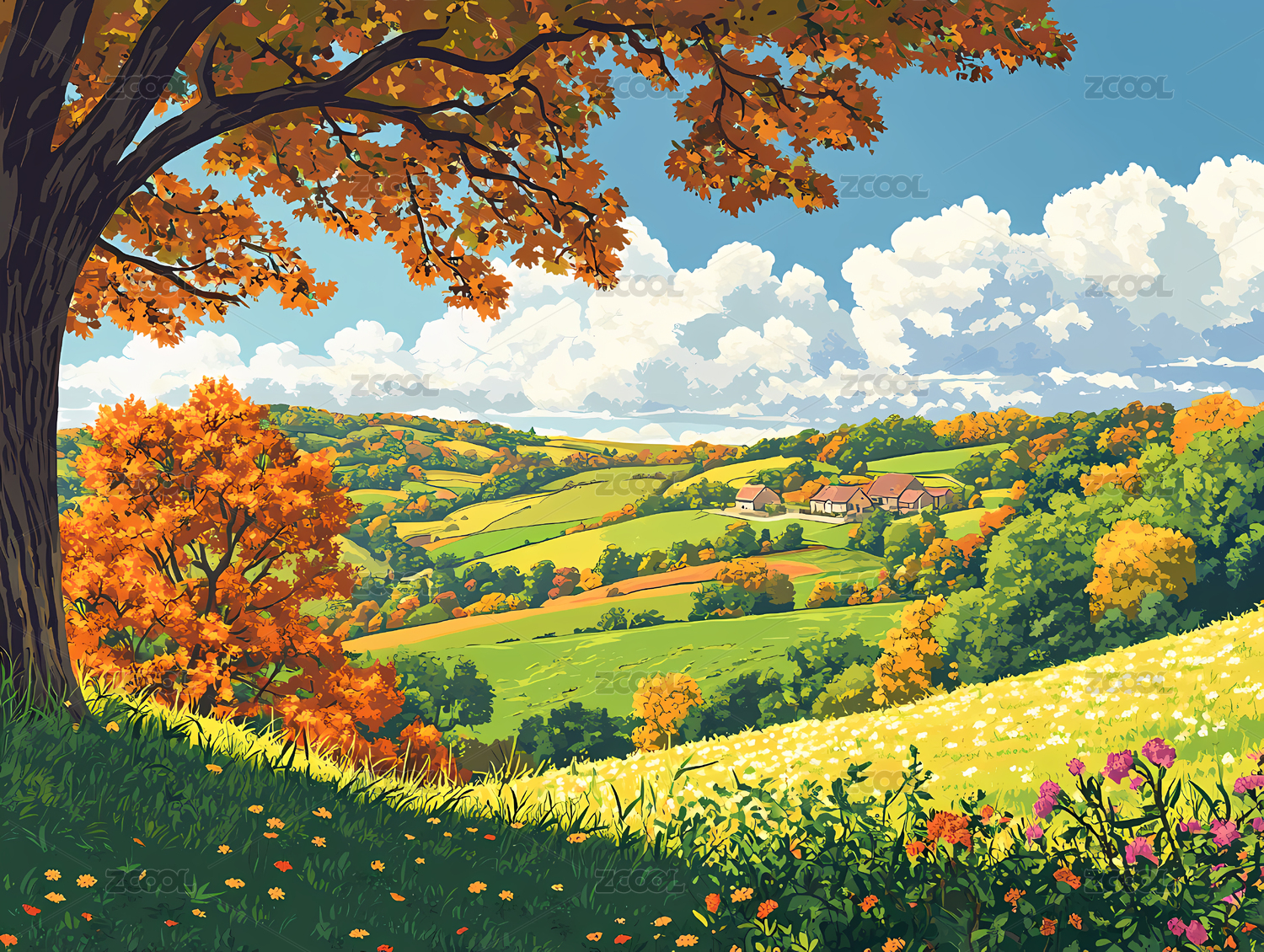 秋天秋季立秋秋分自然户外风景卡通漫画插画