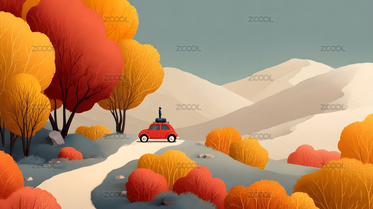 树木,远山,风景,黄色,秋叶,秋天,植物,道路,绿色,乡村