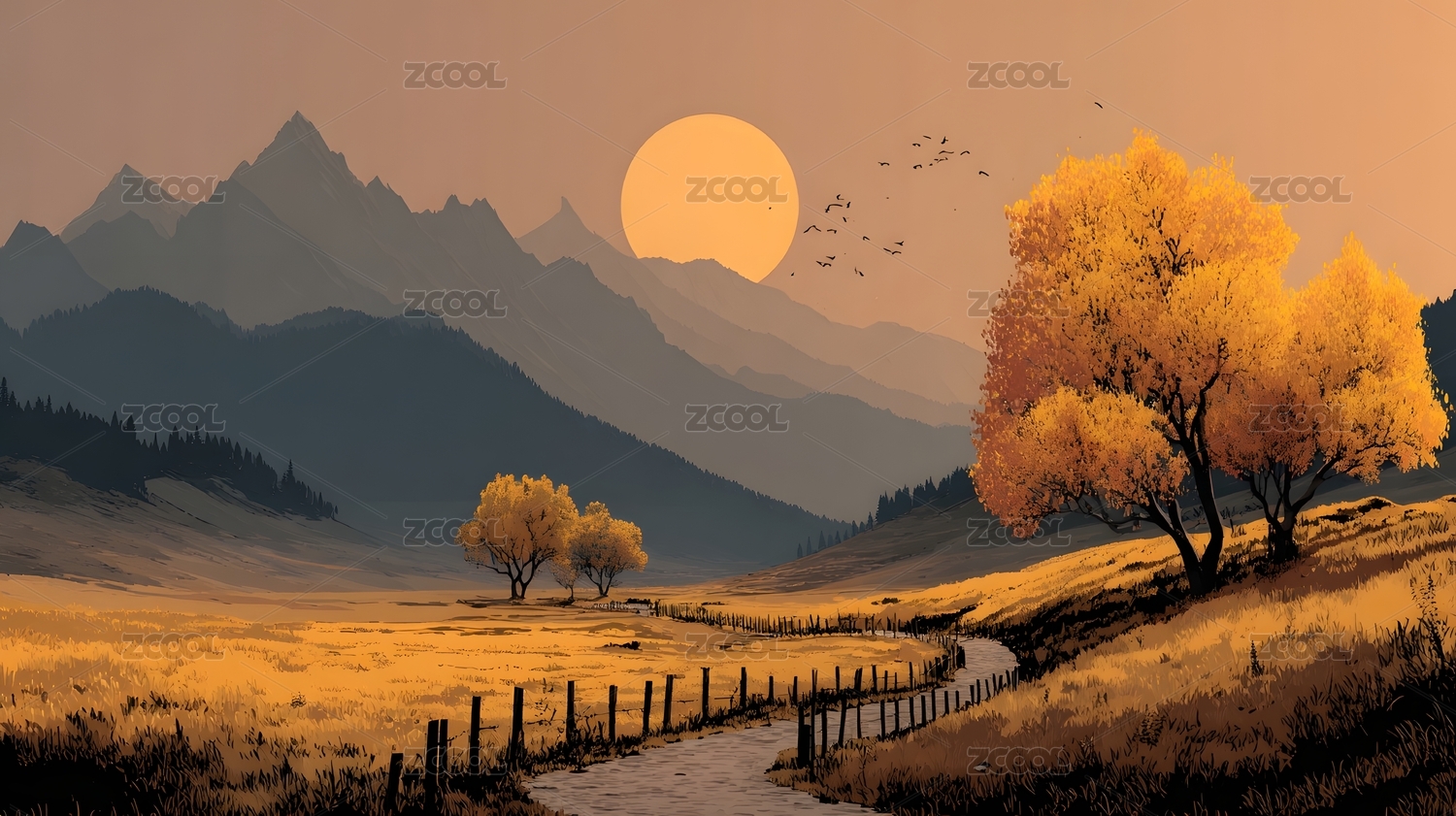 秋日山水画主题