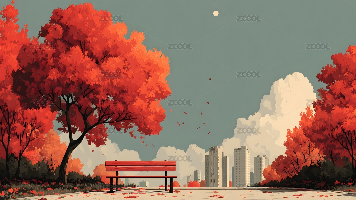 树木,云朵,远山,飞鸟,自然,风景,宁静,天空,橙色,秋天