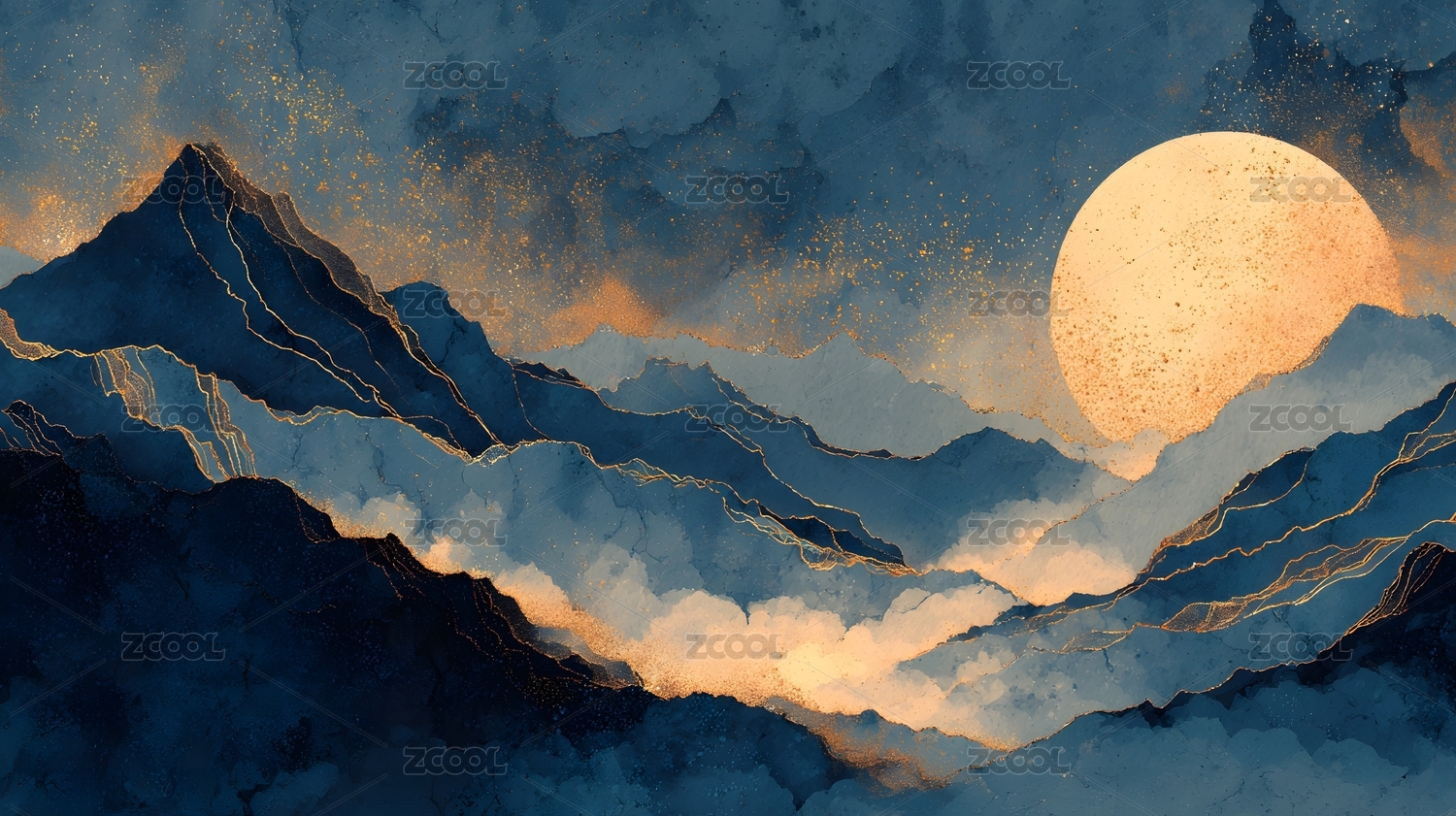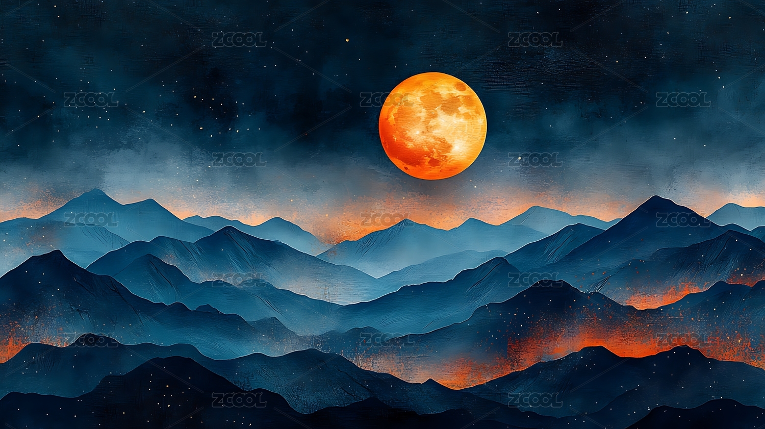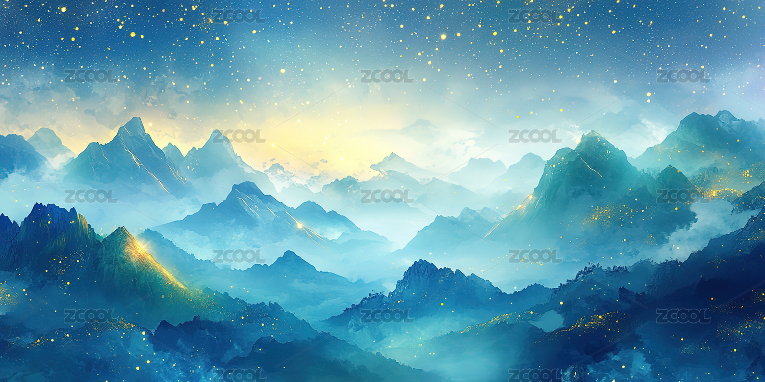 风景,山脉,景色,蓝色,艺术,背景,远山,星点,梦幻,晚霞