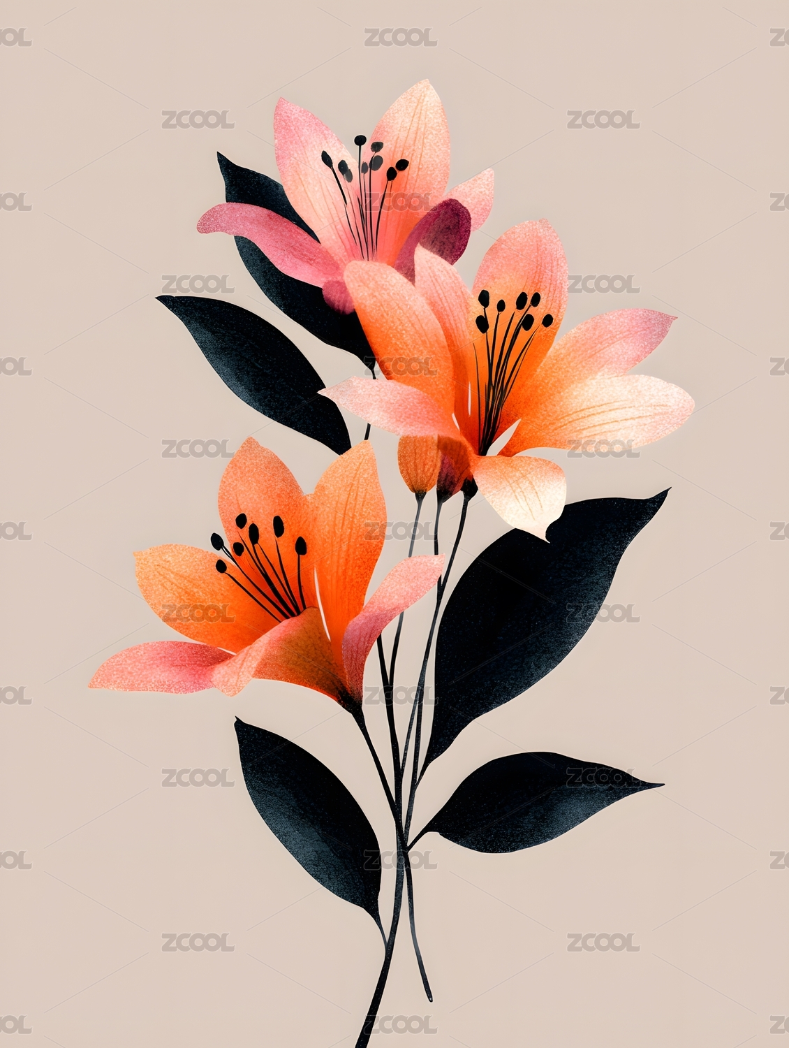 抽象花卉艺术插画