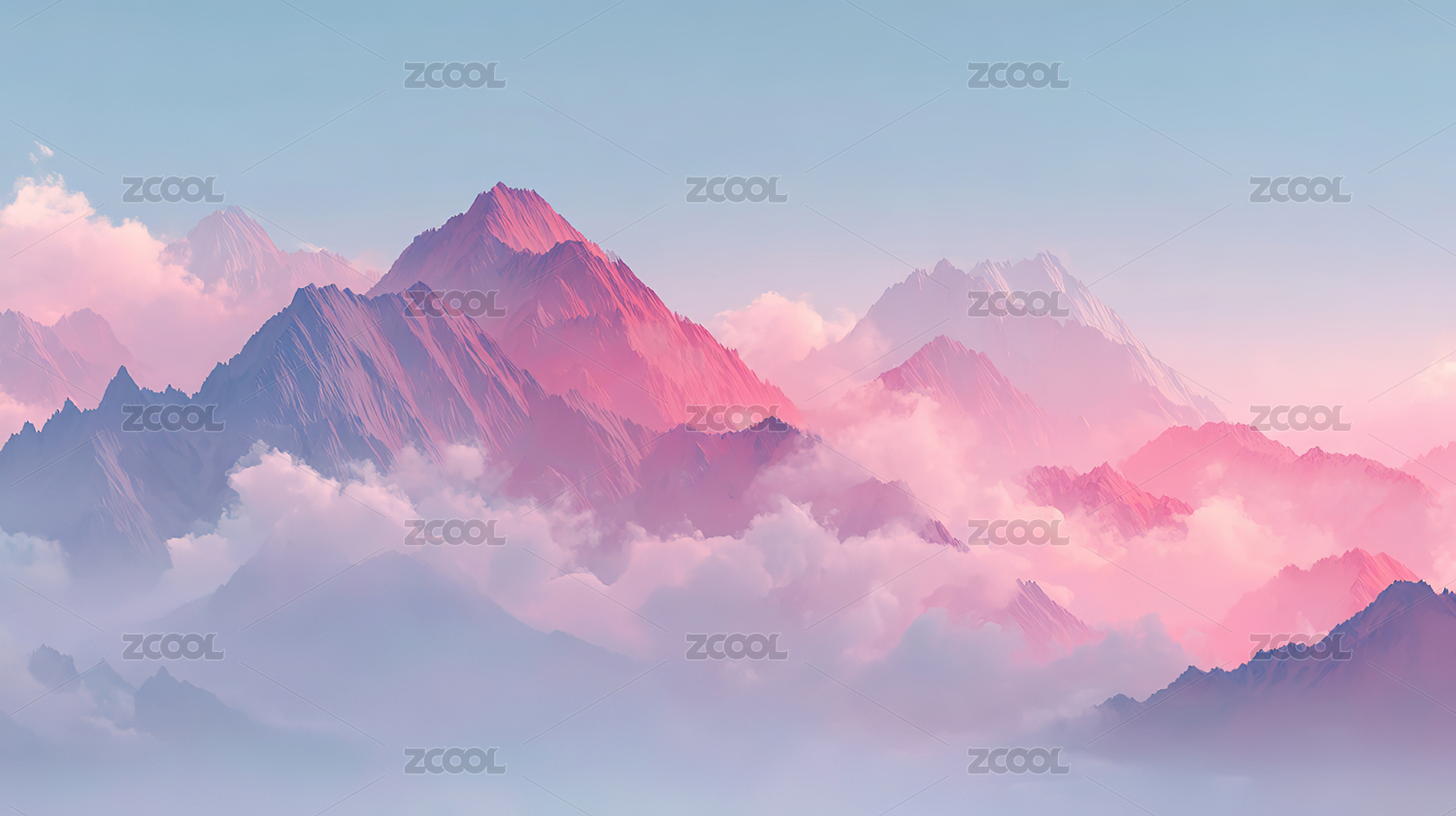 梦幻粉色山脉日落景象