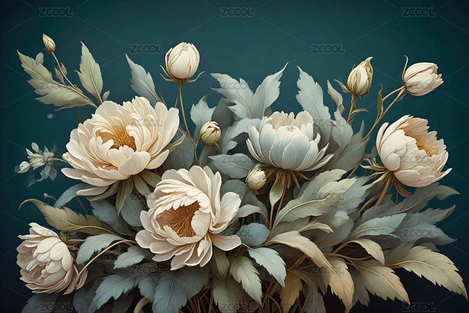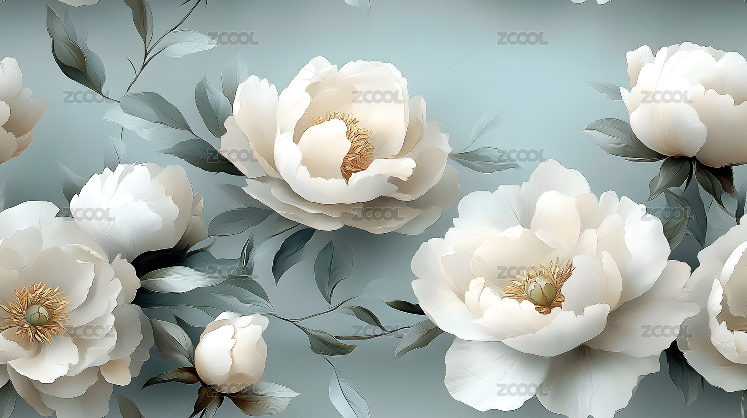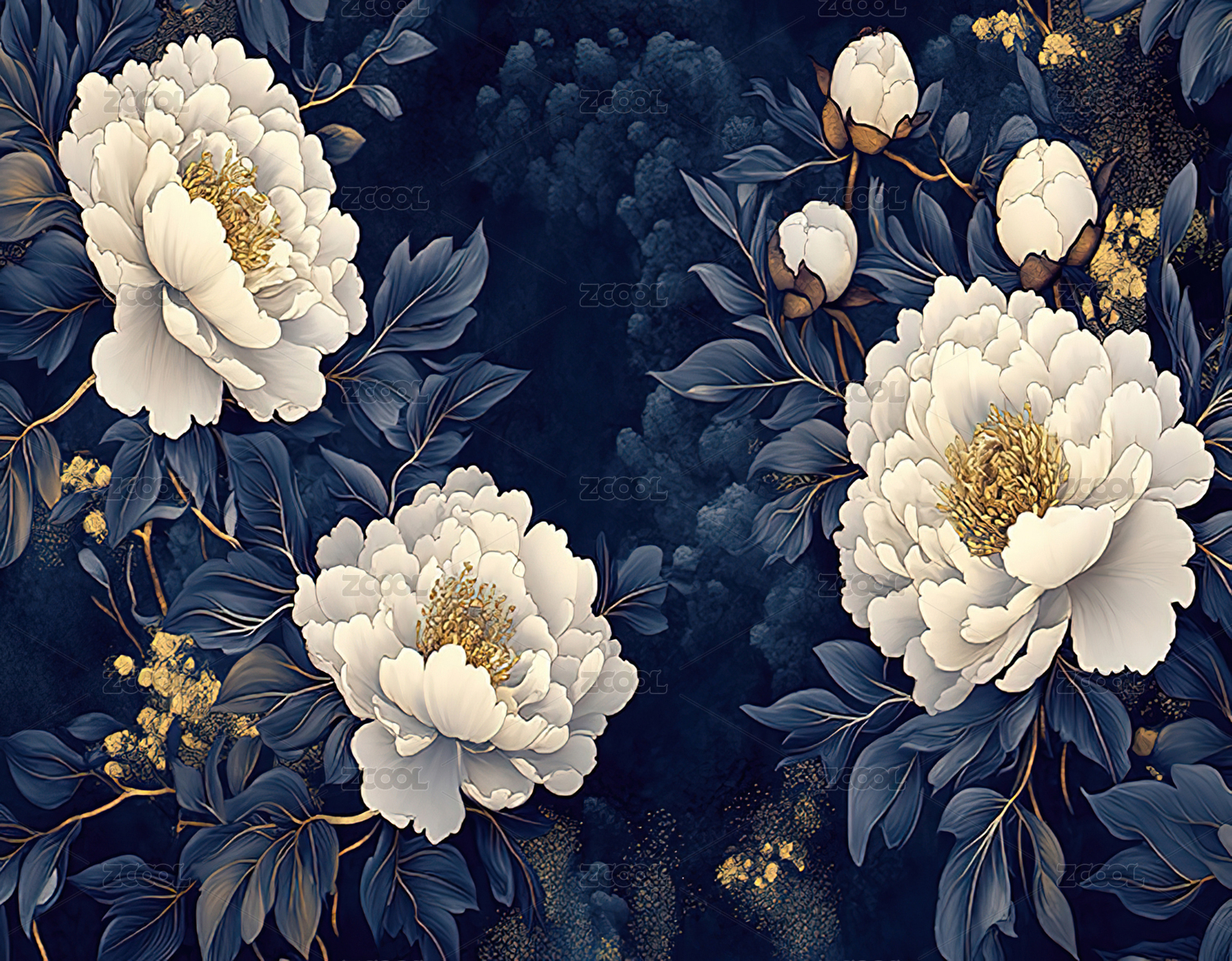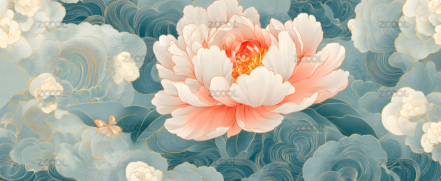 中国风国画风格水彩风格水墨风格牡丹花白色